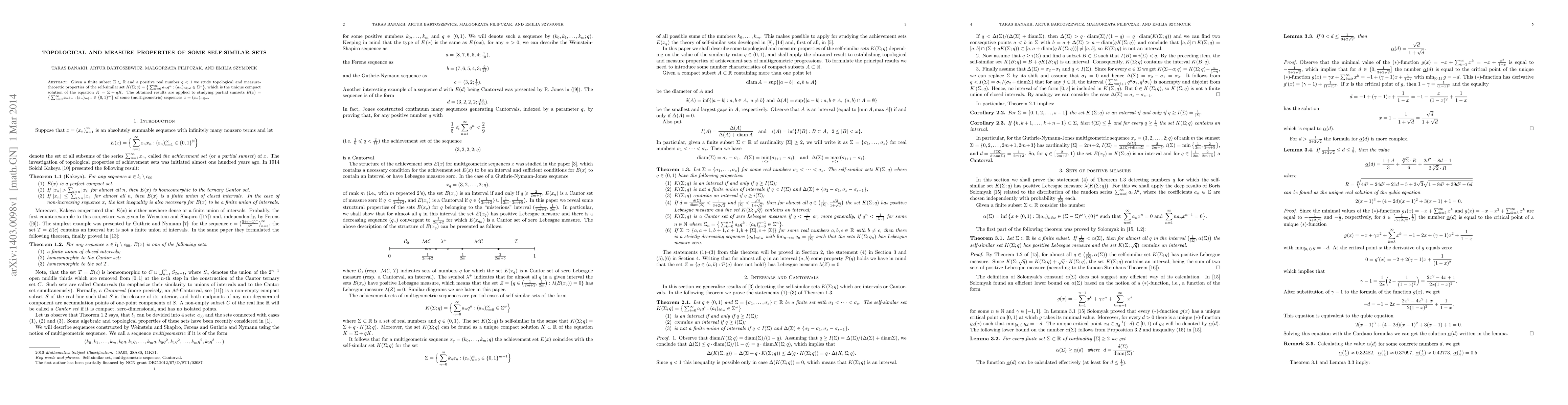 This research paper investigates self-similar sets with properties determined by a finite subset of real numbers and a positive ratio less than 1. It explores their topological and measure-theoretic implications for studying partial sumsets of sequences.