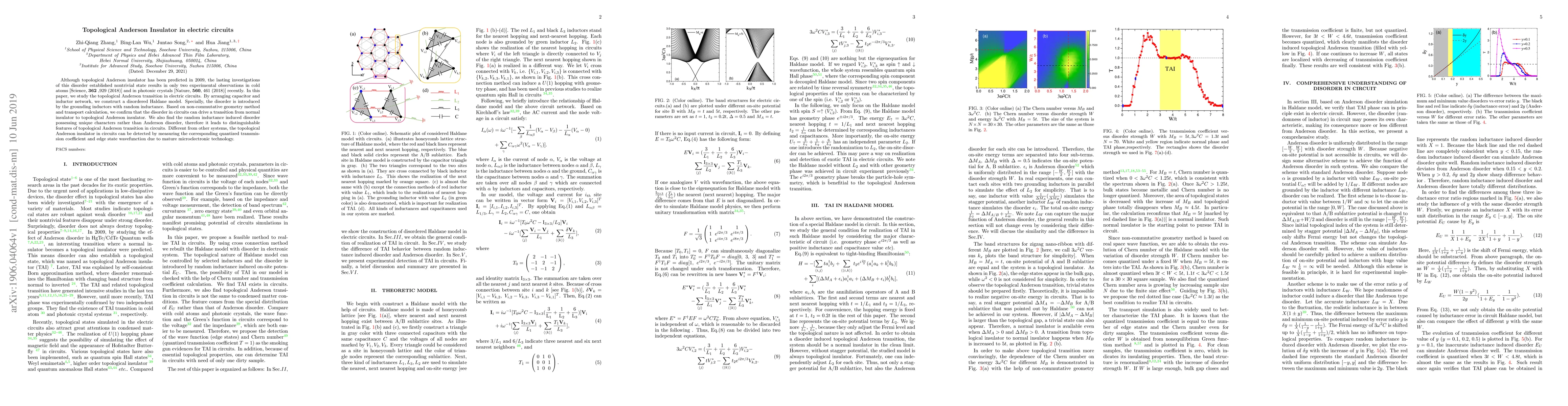 This paper investigates the topological Anderson transition in electric circuits, constructing a disordered Haldane model with random inductance grounding inductors. It confirms the transition from normal to topological Anderson insulator via non-commutative geometry and transport calculations, highlighting unique features due to random inductance and proposing measurable quantized transmission coefficient and edge state wavefunction for detection.