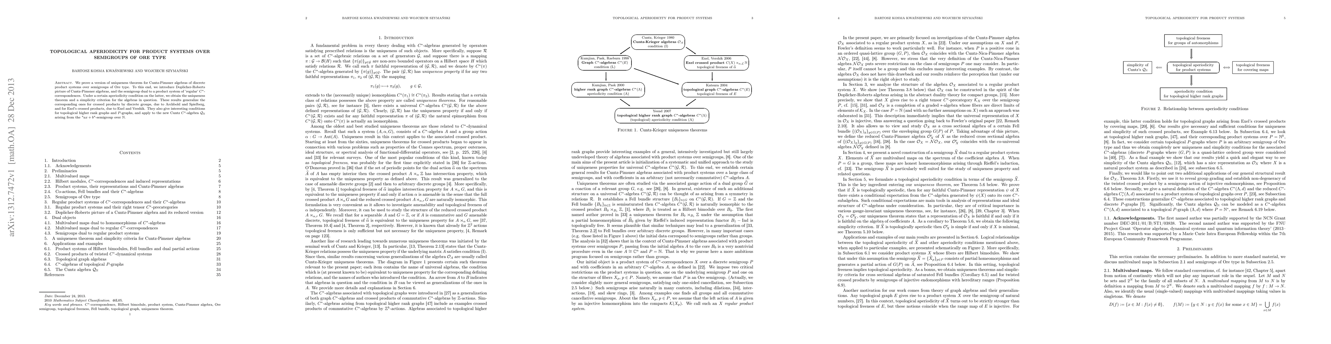 We prove a version of uniqueness theorem for Cuntz-Pimsner algebras of discrete product systems over semigroups of Ore type. To this end, we introduce Doplicher-Roberts picture of Cuntz-Pimsner algebras, and the semigroup dual to a product system of 'regular' C*-correspondences. Under a certain aperiodicity condition on the latter, we obtain the uniqueness theorem and a simplicity criterion for the algebras in question. These results generalize the corresponding ones for crossed products by discrete groups, due to Archbold and Spielberg, and for Exel's crossed products, due to Exel and Vershik. They also give interesting conditions for topological higher rank graphs and $P$-graphs, and apply to the new Cuntz C*-algebra $\mathcal{Q}_\mathbb{N}$ arising from the "$ax+b$"-semigroup over $\mathbb{N}$.