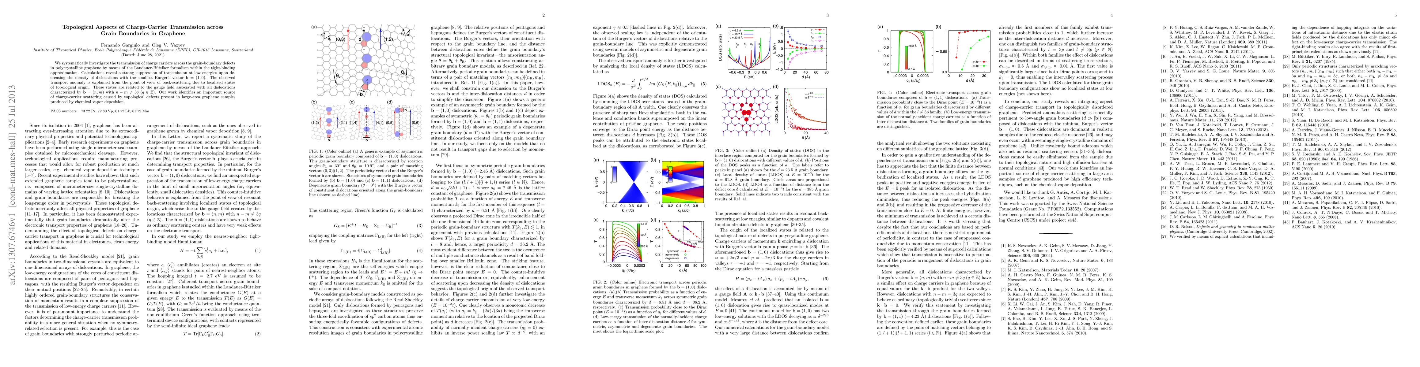 This paper examines charge-carrier transmission across grain boundaries in graphene, revealing significant suppression at low energies due to back-scattering from topological localized states. These states, tied to dislocations with a specific Burger's vector, highlight the impact of topological defects on charge transport in polycrystalline graphene.