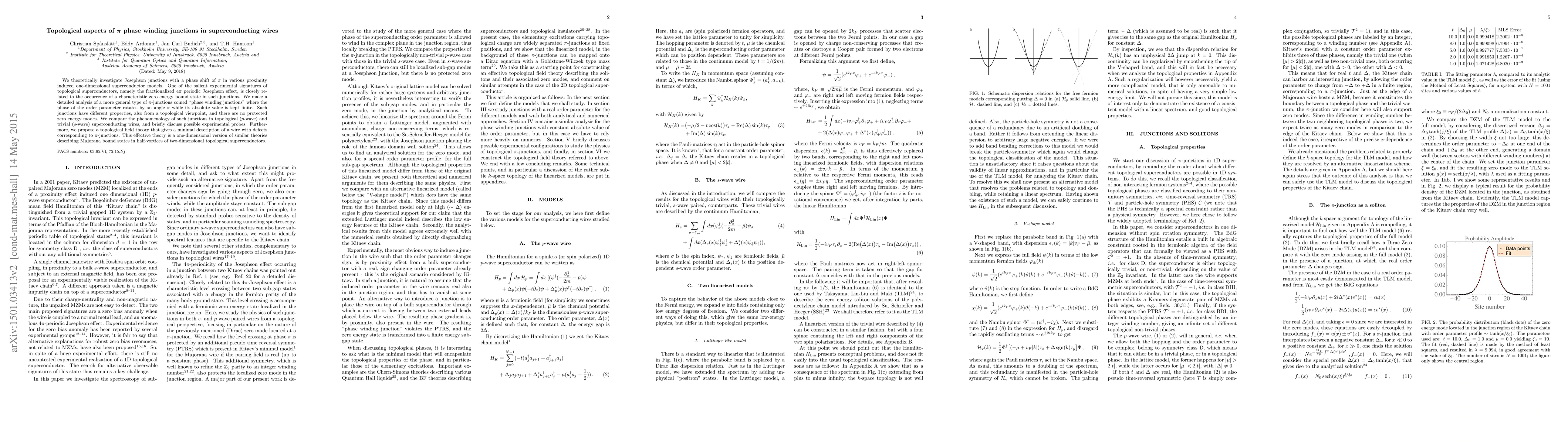 This research investigates phase winding junctions in superconducting wires, comparing their topological properties with those in topological and trivial superconducting wires. It proposes a topological field theory for modeling $\pi$-junctions and discusses potential experimental probes for their unique characteristics.
