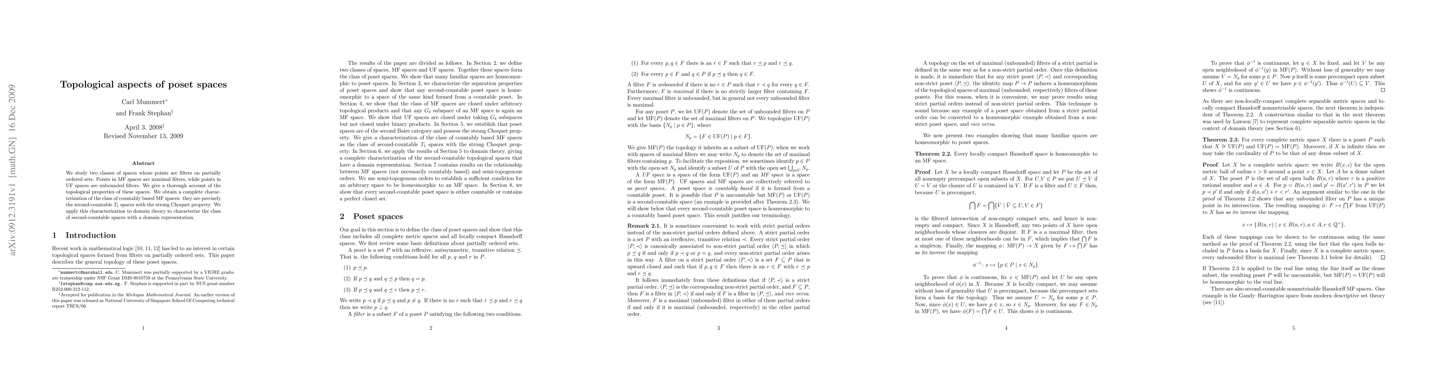 The research introduces a new perspective on the topological aspects of poset spaces, particularly through the lens of filters on partially ordered sets, and provides a novel characterization of countably based MF spaces.