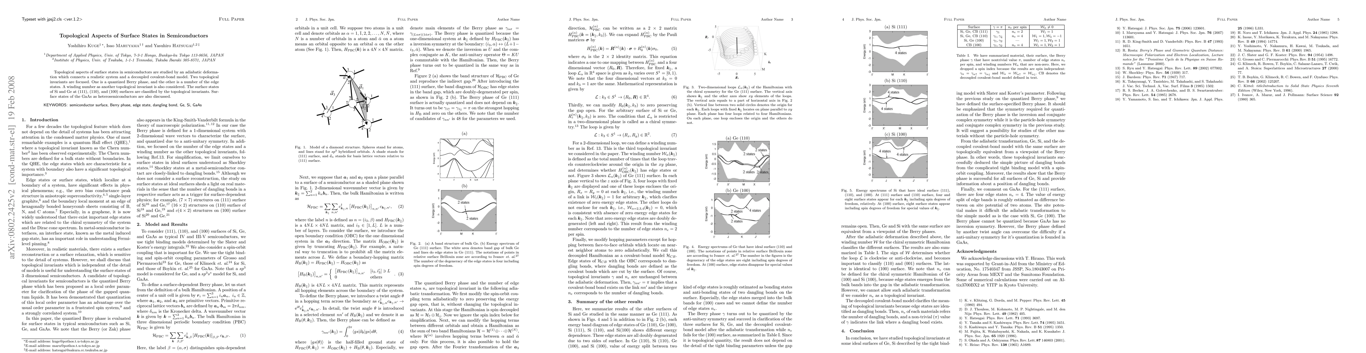 This paper investigates the topological properties of surface states in semiconductors through adiabatic deformation, focusing on quantized Berry phase and edge states. It classifies surface states of Si, Ge, and GaAs using topological invariants, including winding number, to understand their unique electronic characteristics.