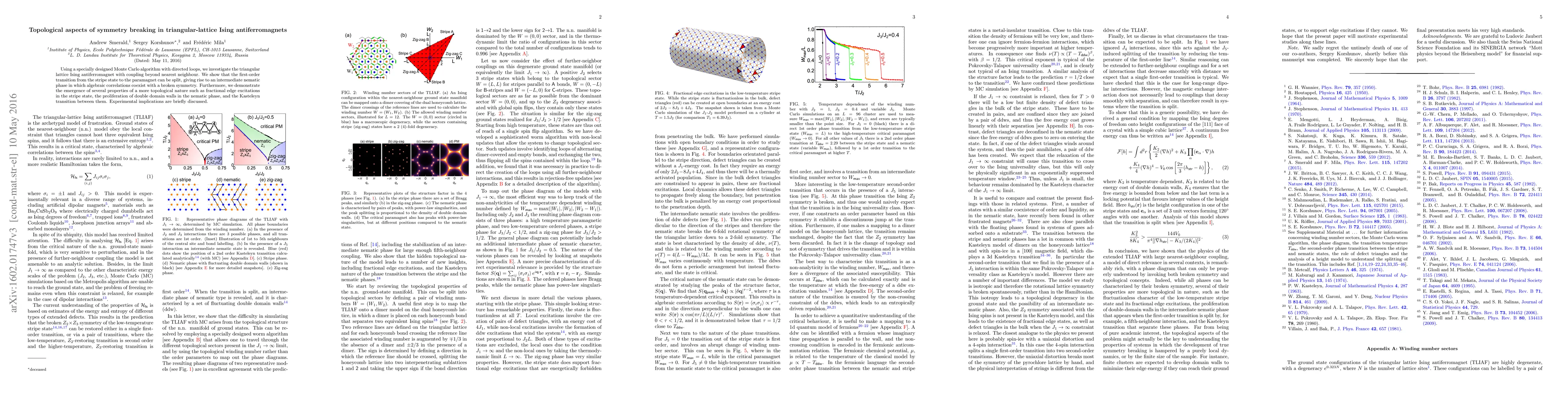 Using a specially designed Monte Carlo algorithm with directed loops, we investigate the triangular lattice Ising antiferromagnet with coupling beyond nearest neighbour. We show that the first-order transition from the stripe state to the paramagnet can be split, giving rise to an intermediate nematic phase in which algebraic correlations coexist with a broken symmetry. Furthermore, we demonstrate the emergence of several properties of a more topological nature such as fractional edge excitations in the stripe state, the proliferation of double domain walls in the nematic phase, and the Kasteleyn transition between them. Experimental implications are briefly discussed.