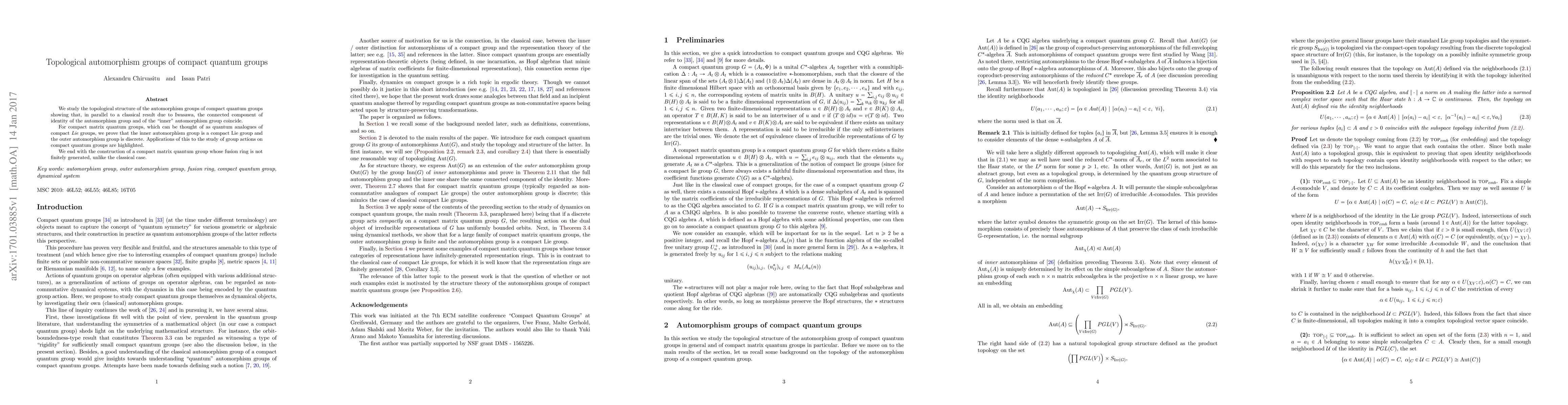 This paper investigates the topological properties of automorphism groups in compact quantum groups, demonstrating that their connected component of the identity and the "inner" automorphism group coincide, akin to classical results for compact Lie groups. It proves that the inner automorphism group is a compact Lie group while the outer automorphism group is discrete, with implications for group actions on quantum groups. The study concludes with the construction of a quantum group with a non-finitely generated fusion ring.