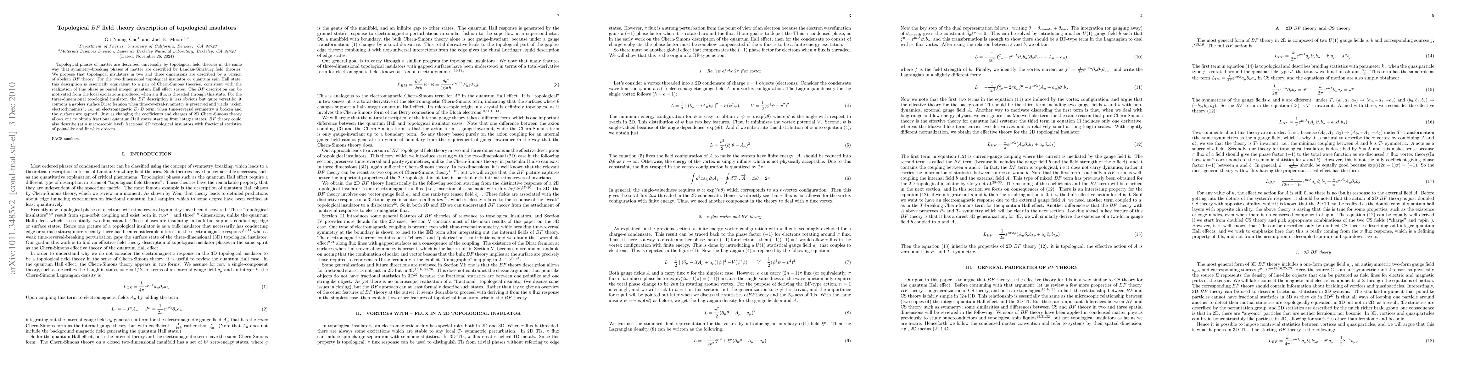 This paper proposes that topological insulators in two and three dimensions can be described by a version of abelian BF field theory, analogous to how symmetry-breaking phases are described by Landau-Ginzburg theories. The two-dimensional version is equivalent to paired Chern-Simons theories, while the three-dimensional version includes a gapless surface Dirac fermion and "axion electrodynamics" under different symmetry conditions.