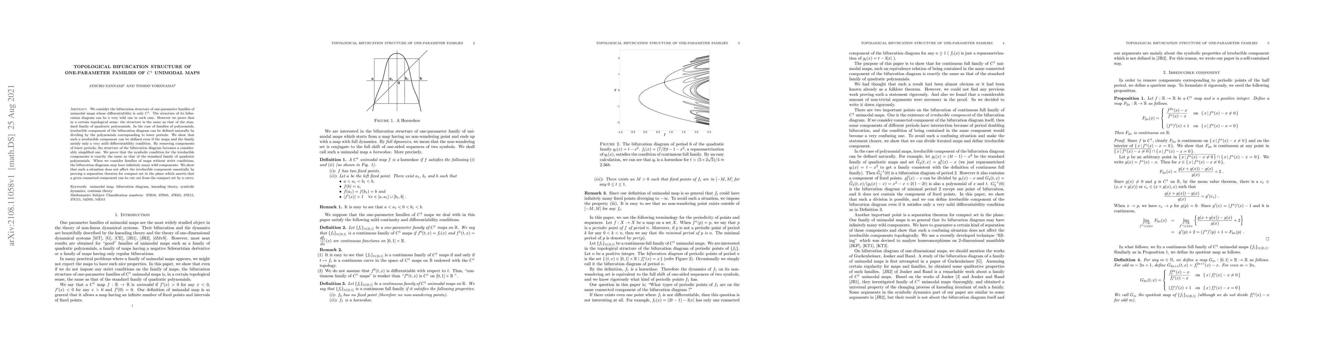 We consider the bifurcation structure of one-parameter families of unimodal maps whose differentiability is only $C^1$. The structure of its bifurcation diagram can be a very wild one in such case. However we prove that in a certain topological sense, the structure is the same as that of the standard family of quadratic polynomials. In the case of families of polynomials, irreducible component of the bifurcation diagram can be defined naturally by dividing by the polynomials corresponding to lower periods. We show that such a irreducible component can be defined even if the maps and the family satisfy only a very mild differentiability condition. By removing components of lower periods, the structure of the bifurcation diagram becomes a considerably simplified one. We prove that the symbolic condition for the irreducible components is exactly the same as that of the standard family of quadratic polynomials. When we consider families of maps without strict conditions, the bifurcation diagrams may have infinitely many wild components. We show that such a situation does not affect the irreducible component essentially by proving a separation theorem for compact set in the plane which asserts that a given connected component can be cut out from the compact set by a curve.