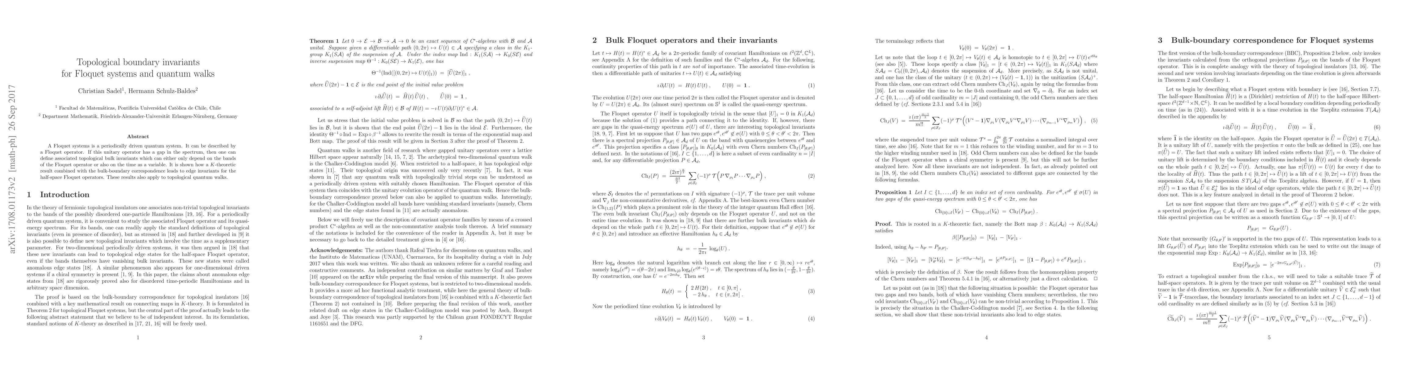 Summary: The paper explores topological invariants in periodically driven quantum systems (Floquet systems) and quantum walks, showing how K-theoretic results and bulk-boundary correspondence yield edge invariants for half-space Floquet operators, applicable to topological quantum walks.
