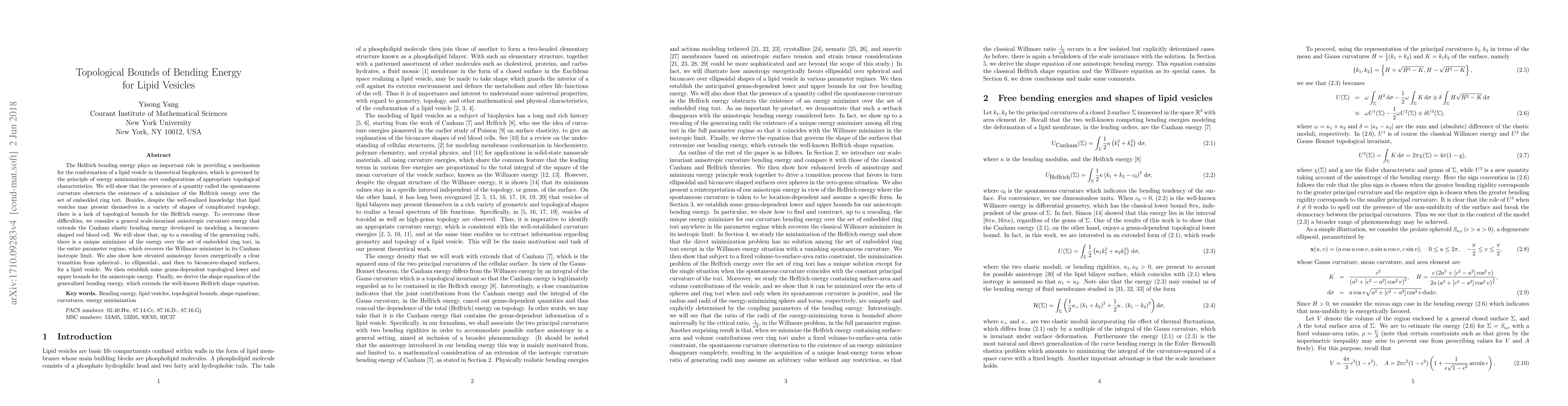 This paper explores the topological bounds of bending energy for lipid vesicles, demonstrating that a unique minimizer exists for a generalized anisotropic curvature energy over embedded ring tori. It reveals how elevated anisotropy drives transitions in vesicle shapes from spherical to biconcave, and establishes genus-dependent lower and upper bounds for the anisotropic energy.