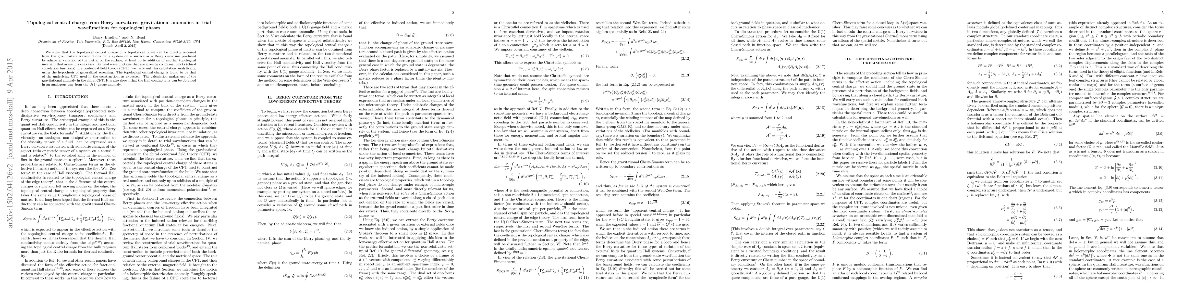 Researchers show that topological central charge can be accessed from ground-state wavefunctions in a surface system, using Berry curvature produced by adiabatic metric variation, and is found to match the underlying conformal field theory.