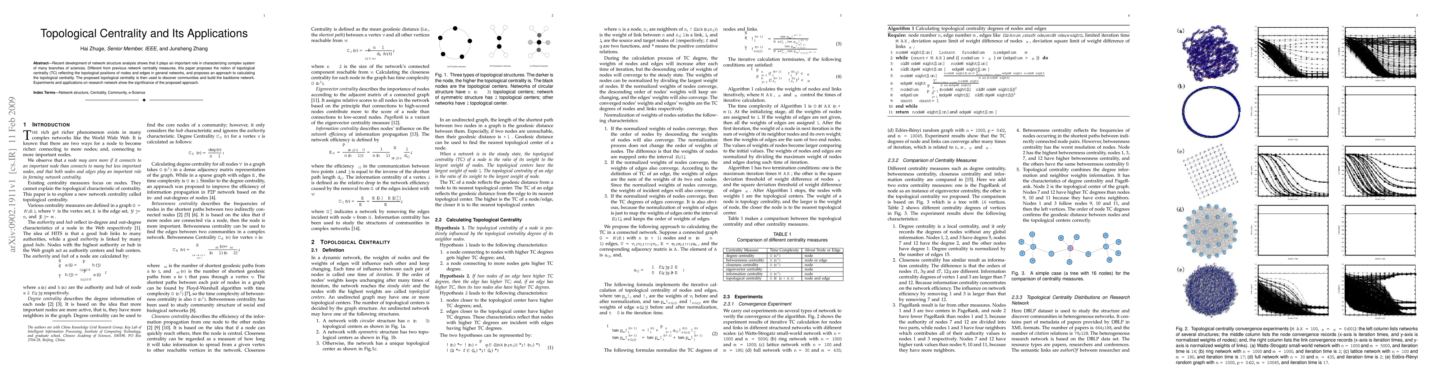 Recent development of network structure analysis shows that it plays an important role in characterizing complex system of many branches of sciences. Different from previous network centrality measures, this paper proposes the notion of topological centrality (TC) reflecting the topological positions of nodes and edges in general networks, and proposes an approach to calculating the topological centrality. The proposed topological centrality is then used to discover communities and build the backbone network. Experiments and applications on research network show the significance of the proposed approach.