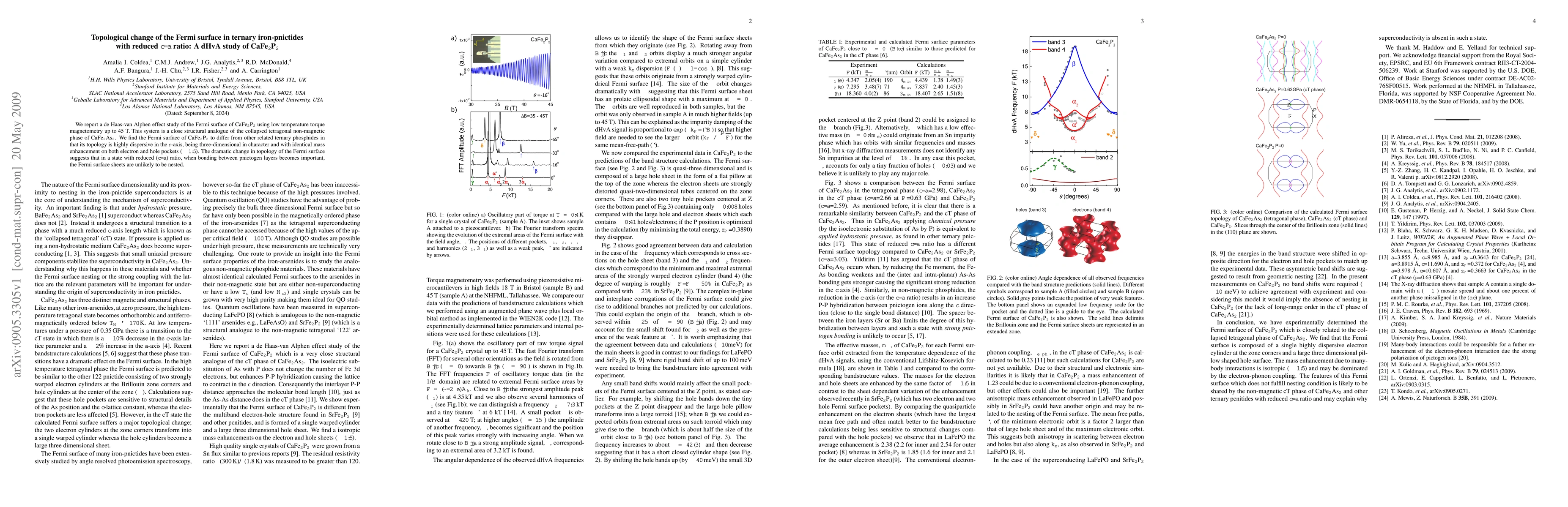 We report a de Haas-van Alphen effect study of the Fermi surface of CaFe2P2 using low temperature torque magnetometry up to 45 T. This system is a close structural analogue of the collapsed tetragonal non-magnetic phase of CaFe2As2. We find the Fermi surface of CaFe2P2 to differ from other related ternary phosphides in that its topology is highly dispersive in the c-axis, being three-dimensional in character and with identical mass enhancement on both electron and hole pockets (~1.5). The dramatic change in topology of the Fermi surface suggests that in a state with reduced (c/a) ratio, when bonding between pnictogen layers becomes important, the Fermi surface sheets are unlikely to be nested.