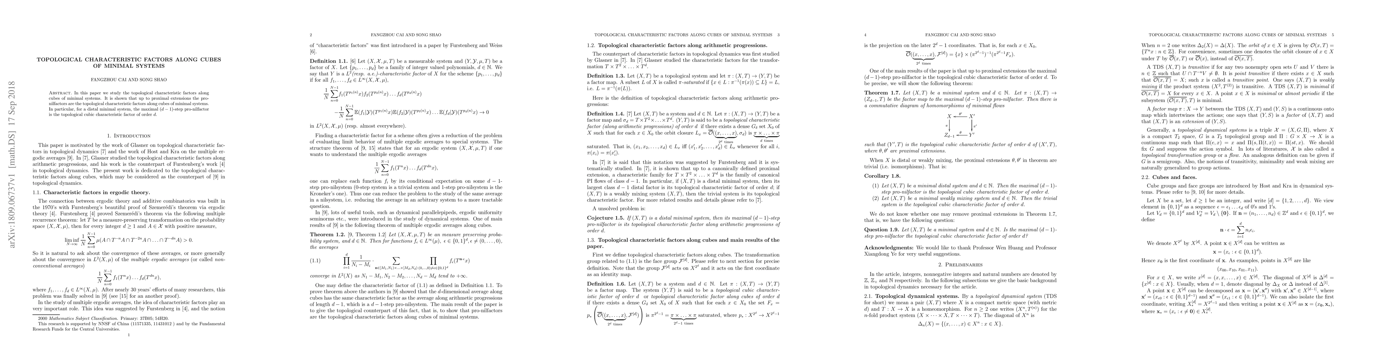 In this paper we study the topological characteristic factors along cubes of minimal systems. It is shown that up to proximal extensions the pro-nilfactors are the topological characteristic factors along cubes of minimal systems. In particular, for a distal minimal system, the maximal $(d-1)$-step pro-nilfactor is the topological cubic characteristic factor of order $d$.