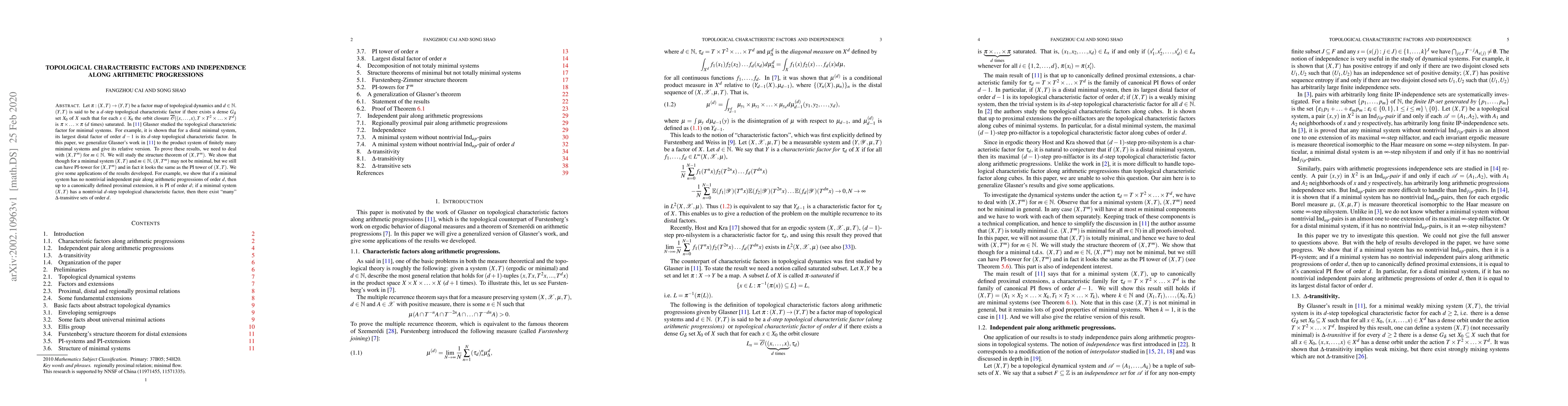 This paper investigates topological characteristic factors in minimal systems along arithmetic progressions, generalizing a 1994 result for distal minimal systems and introducing new findings on the structure theorem of products.