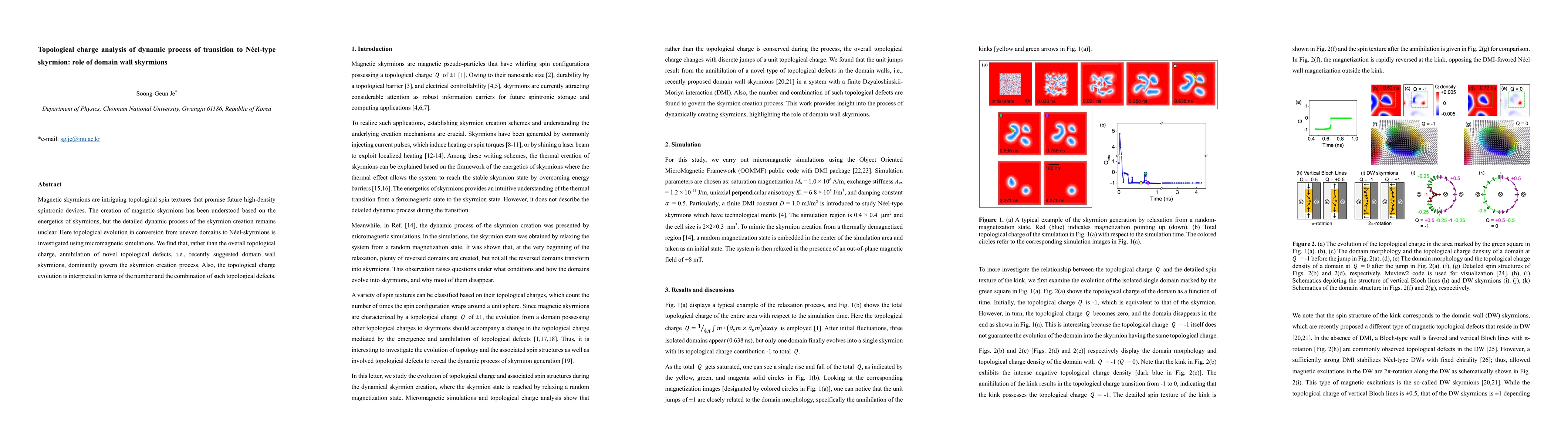 Magnetic skyrmions are intriguing topological spin textures that promise future high-density spintronic devices. The creation of magnetic skyrmions has been understood based on the energetics of skyrmions, but the detailed dynamic process of the skyrmion creation remains unclear. Here topological evolution in conversion from uneven domains to N\'eel-skyrmions is investigated using micromagnetic simulations. We find that, rather than the overall topological charge, annihilation of novel topological defects, i.e., recently suggested domain wall skyrmions, dominantly govern the skyrmion creation process. Also, the topological charge evolution is interpreted in terms of the number and the combination of such topological defects.
