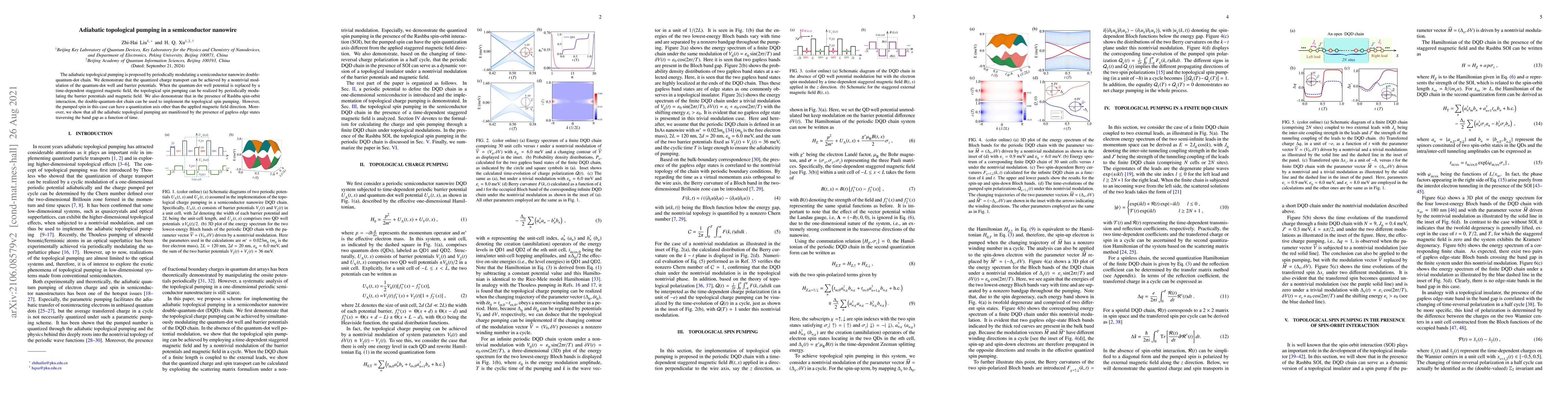 This paper proposes adiabatic topological pumping in a semiconductor nanowire double-quantum-dot chain, demonstrating quantized charge transport and topological spin pumping through modulation of quantum-dot potentials and magnetic fields, with edge states indicating the topological nature of the process.
