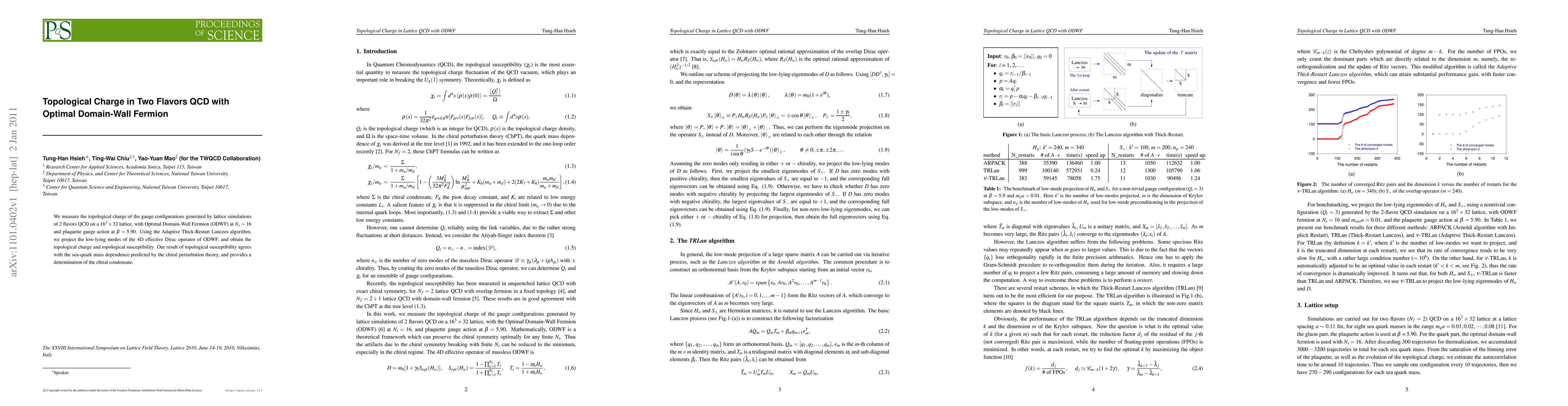 This study measures the topological charge in 2 flavors QCD using lattice simulations with Optimal Domain-Wall Fermion on a $16^3 \times 32$ lattice. The topological susceptibility result aligns with predictions from chiral perturbation theory, offering insights into the chiral condensate.