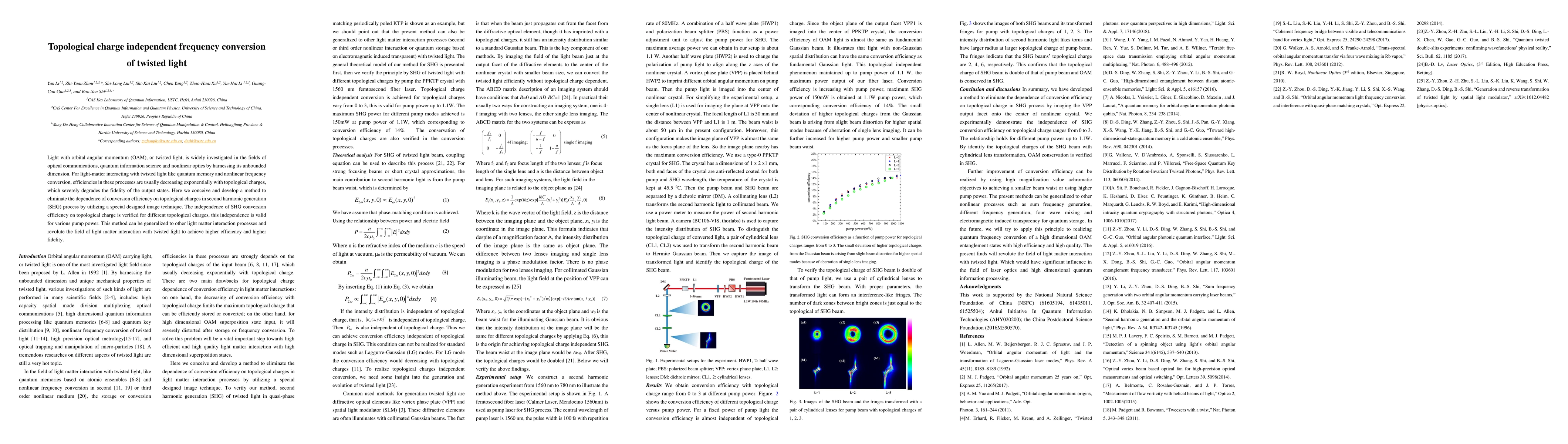 This paper proposes a novel method to achieve topological charge independent frequency conversion in twisted light through second harmonic generation (SHG) using a specially designed imaging technique. This approach eliminates the usual exponential efficiency decay with topological charge, thus enhancing the fidelity of output states and potentially revolutionizing light-matter interaction processes.