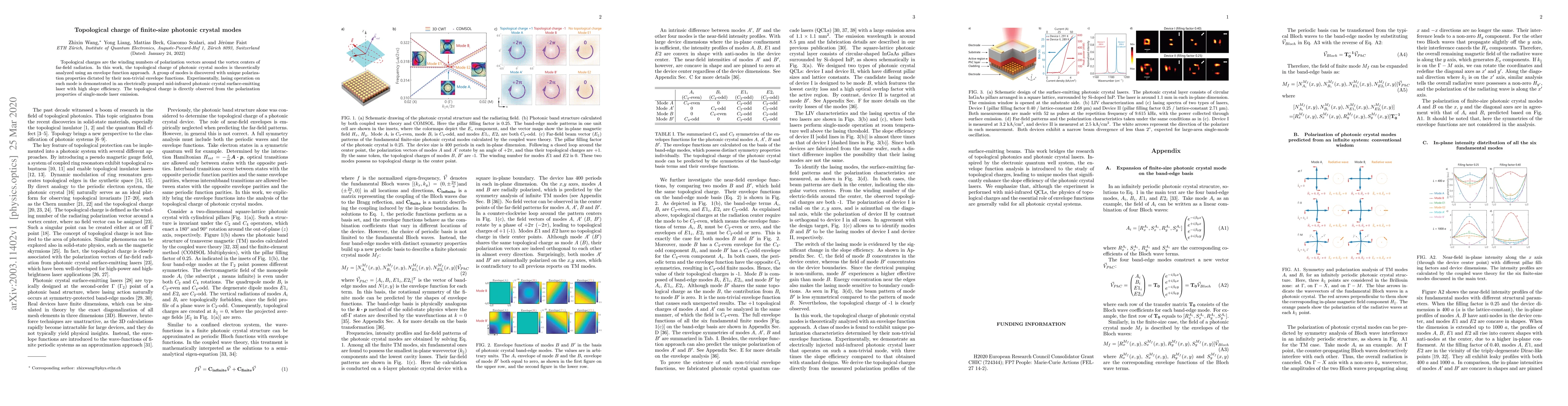 Topological charges are the winding numbers of polarization vectors around the vortex centers of far-field radiation. In this work, the topological charge of photonic crystal modes is theoretically analyzed using an envelope function approach. A group of modes is discovered with unique polarization properties dictated by their non-trivial envelope functions. Experimentally, lasing operation on such mode is demonstrated in an electrically pumped mid-infrared photonic crystal surface-emitting laser with high slope efficiency. The topological charge is directly observed from the polarization properties of single-mode laser emission.