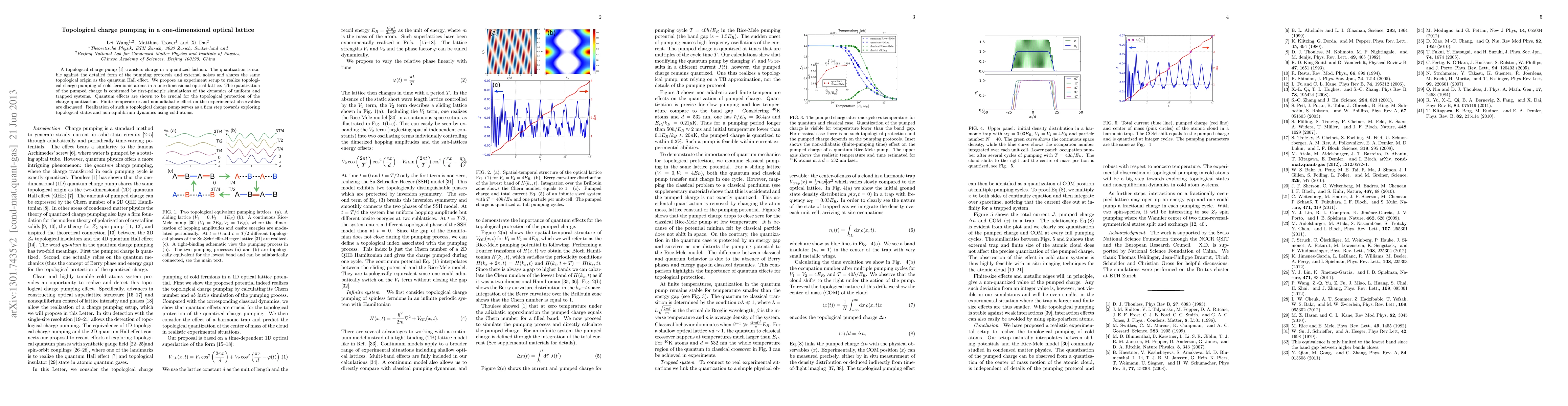 This paper proposes an experimental setup to demonstrate topological charge pumping in a one-dimensional optical lattice using cold atoms, with simulations confirming the quantized charge transfer. Quantum effects are essential for topological protection, highlighting the significance of such experiments in exploring topological states and non-equilibrium dynamics.