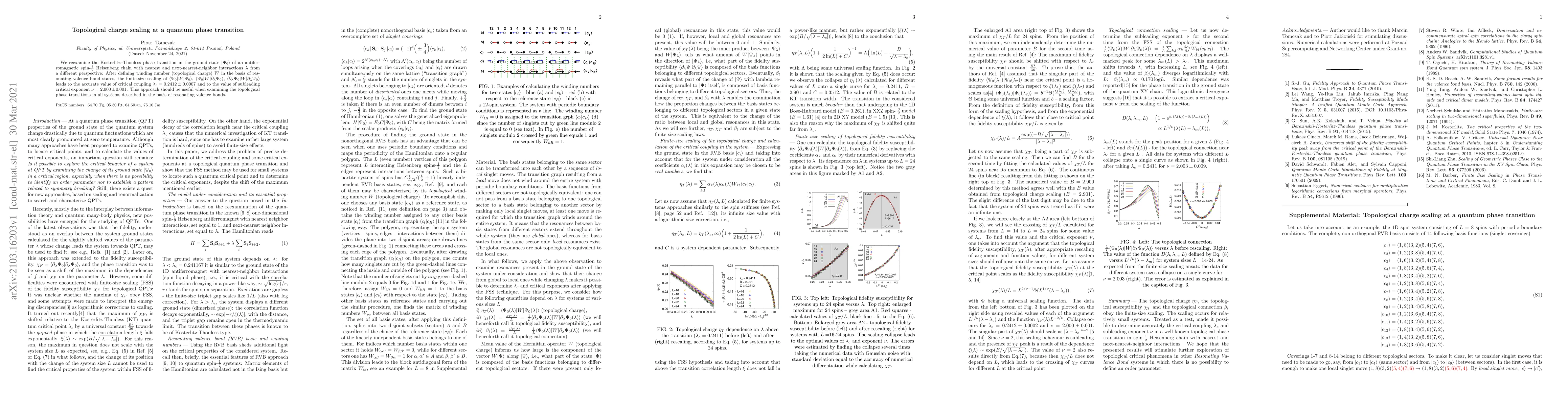 We reexamine the Kosterlitz-Thouless phase transition in the ground state $|\Psi_0\rangle$ of an antiferromagnetic spin-$\frac{1}{2}$ Heisenberg chain with nearest and next-nearest-neighbor interactions $\lambda$ from a different perspective: After defining winding number (topological charge) $W$ in the basis of resonating valence bond states, the finite-size scaling of $\langle\Psi_0|W| \Psi_0 \rangle$, $\langle\Psi_0|W|\partial_\lambda \Psi_0 \rangle$, $\langle\partial_\lambda\Psi_0|W|\partial_\lambda \Psi_0 \rangle$ leads to the accurate value of critical coupling $\lambda_c=0.2412\pm0.0007$ and to the value of subleading critical exponent $\nu=2.000\pm0.001$. This approach should be useful when examining the topological phase transitions in all systems described in the basis of resonating valence bonds.