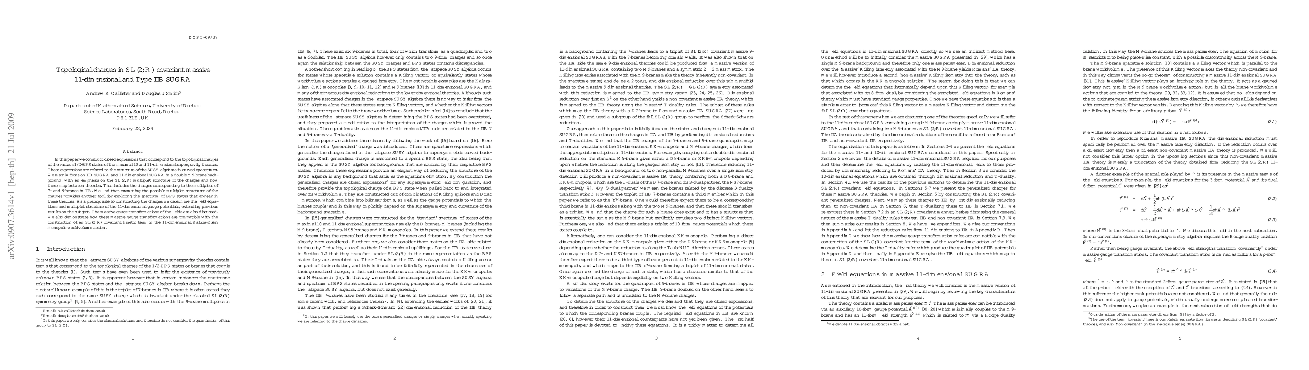 In this paper we construct closed expressions that correspond to the topological charges of the various 1/2-BPS states of the maximal 10 and 11-dimensional supergravity theories. These expressions are related to the structure of the SUSY algebras in curved spacetimes. We mainly focus on IIB SUGRA and 11-dimensional SUGRA in a double M9-brane background, with an emphasis on the SL(2,R) multiplet structure of the charges and how these map between theories. This includes the charges corresponding to the multiplets of 7- and 9-branes in IIB. We find that examining the possible multiplet structures of the charges provides another tool for exploring the spectrum of BPS states that appear in these theories. As a prerequisite to constructing the charges we determine the field equations and multiplet structure of the 11-dimensional gauge potentials, extending previous results on the subject. The massive gauge transformations of the fields are also discussed. We also demonstrate how these massive gauge transformations are compatible with the construction of an SL(2,R) covariant kinetic term in the 11-dimensional Kaluza-Klein monopole worldvolume action.