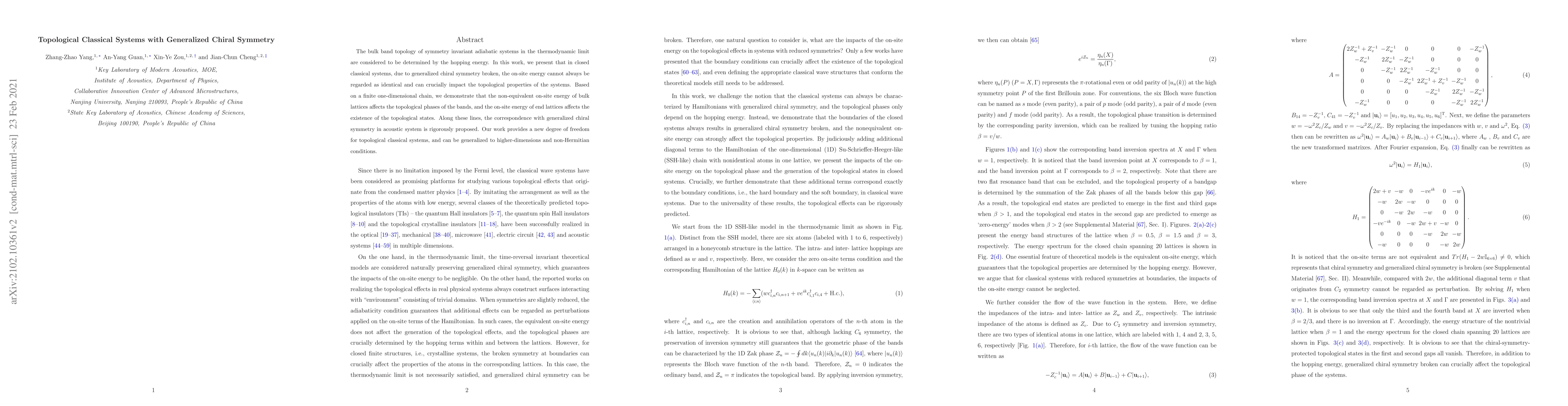 The bulk band topology of symmetry invariant adiabatic systems in the thermodynamic limit are considered to be determined by the hopping energy. In this work, we present that in closed classical systems, due to generalized chiral symmetry broken, the on-site energy cannot always be regarded as identical and can crucially impact the topological properties of the systems. Based on a finite one-dimensional chain, we demonstrate that the non-equivalent on-site energy of bulk lattices affects the topological phases of the bands, and the on-site energy of end lattices affects the existence of the topological states. Along these lines, the correspondence with generalized chiral symmetry in acoustic system is rigorously proposed. Our work provides a new degree of freedom for topological classical systems, and can be generalized to higher-dimensions and non-Hermitian conditions.