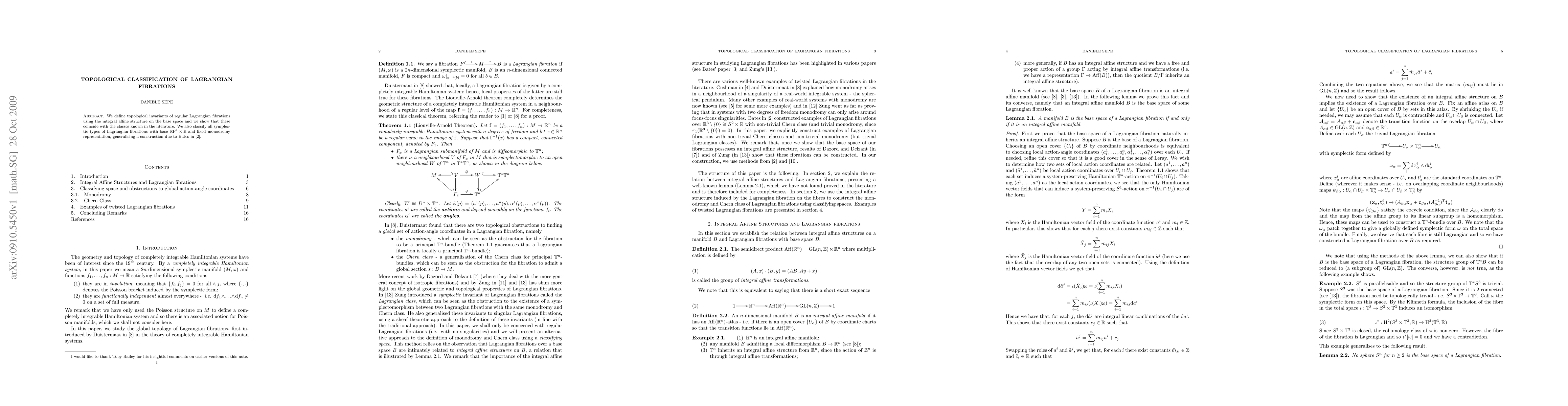 This paper defines topological invariants for regular Lagrangian fibrations via the integral affine structure on the base space and demonstrates their equivalence with existing classes. It also classifies all symplectic types of such fibrations over $\rpr$ with a fixed monodromy representation, extending Bates' construction.