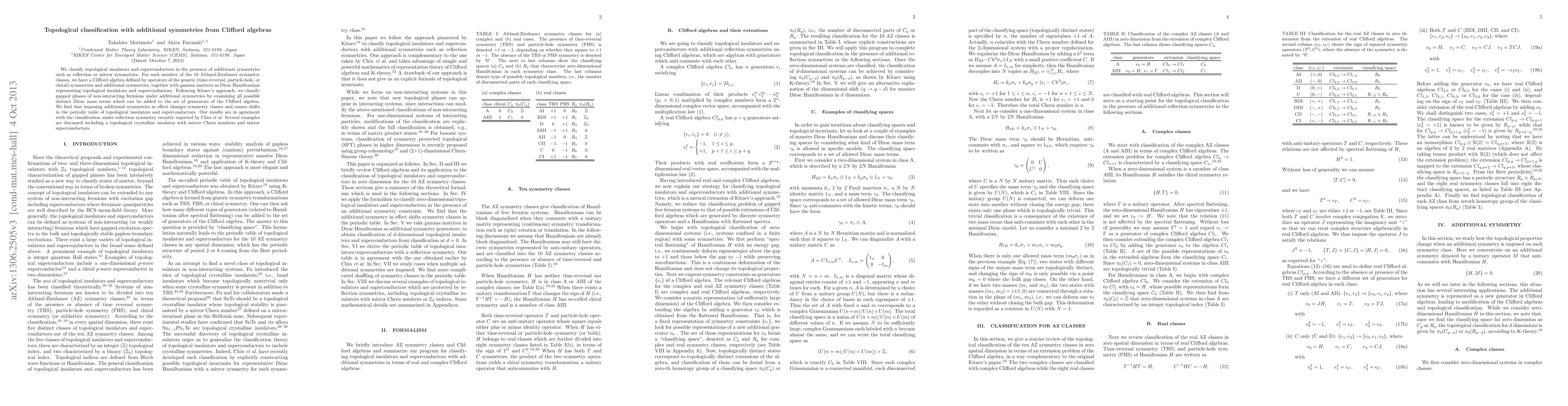 This research classifies topological insulators and superconductors with extra symmetries like reflection using Clifford algebras, finding that such symmetries modify traditional symmetry classes and alter the periodic table of topological phases. Examples include mirror Chern numbers in insulators and mirror superconductors.