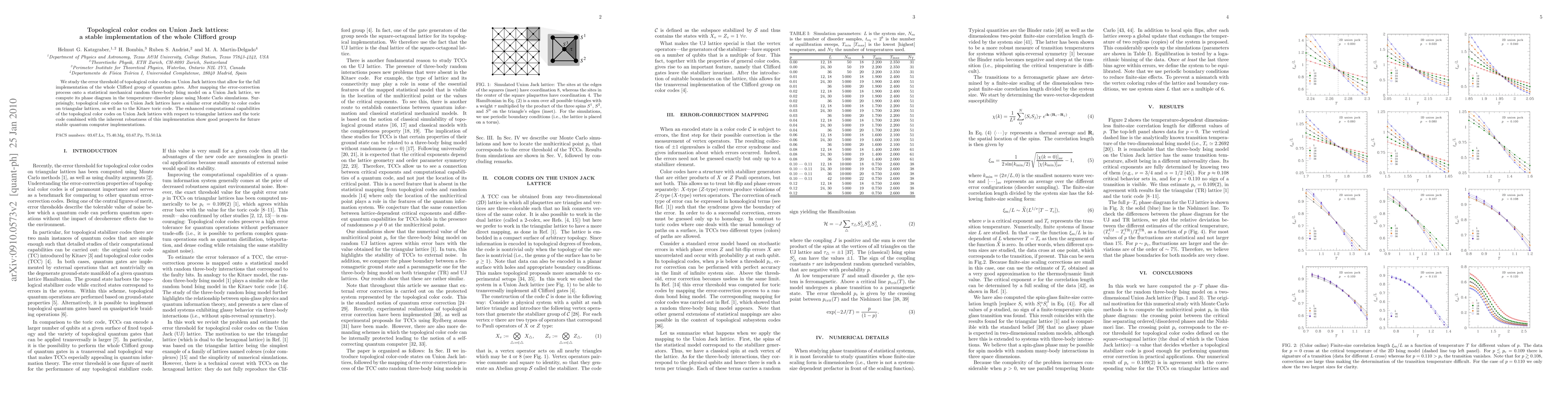 This paper investigates the error threshold of topological color codes on Union Jack lattices, demonstrating their ability to implement the entire Clifford group of quantum gates. Monte Carlo simulations reveal that these codes exhibit comparable error stability to those on triangular lattices and the Kitaev toric code, highlighting their robustness and enhanced computational capacity.