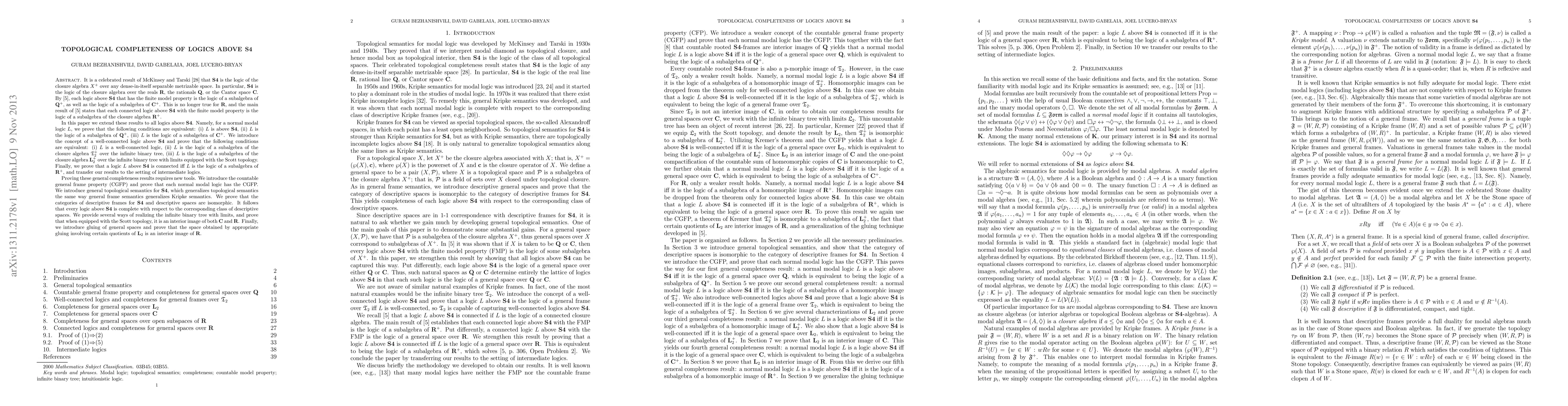 This paper extends previous results on topological completeness of logics above S4. It establishes equivalences between a logic being above S4, its relation to subalgebras of Q+, C+, and the infinite binary tree topologies. The research also connects logic connectivity with the closure algebra R+, and transfers findings to intermediate logics.