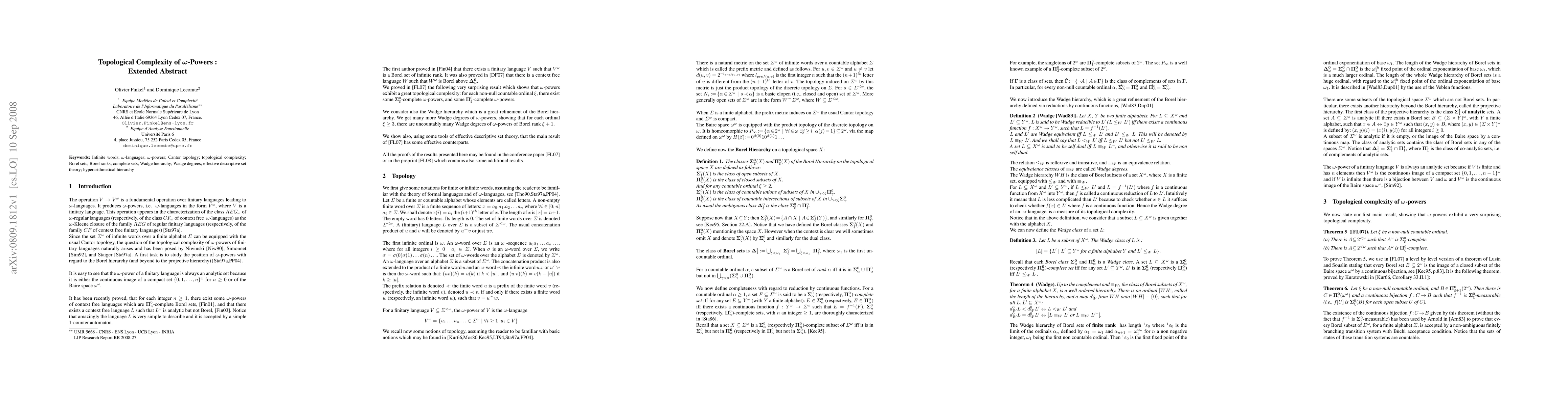 This is an extended abstract presenting new results on the topological complexity of omega-powers (which are included in a paper "Classical and effective descriptive complexities of omega-powers" available from arXiv:0708.4176) and reflecting also some open questions which were discussed during the Dagstuhl seminar on "Topological and Game-Theoretic Aspects of Infinite Computations" 29.06.08 - 04.07.08.