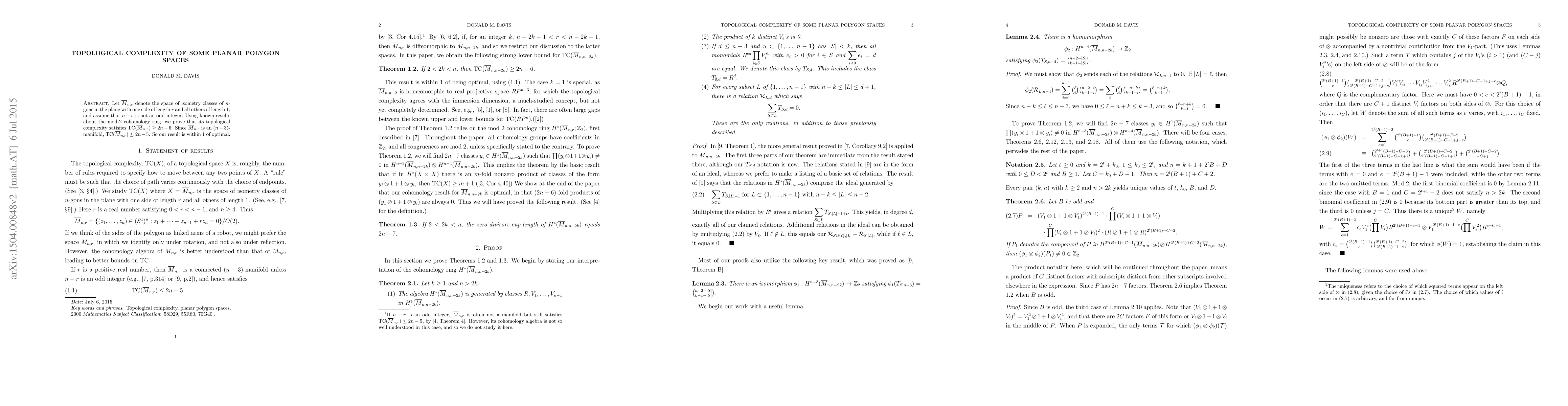 Summary: This paper determines the topological complexity of a specific space of n-gons in the plane, showing it to be either 2n-5 or 2n-6, depending on the parity of n-r, using mod-2 cohomology ring analysis.