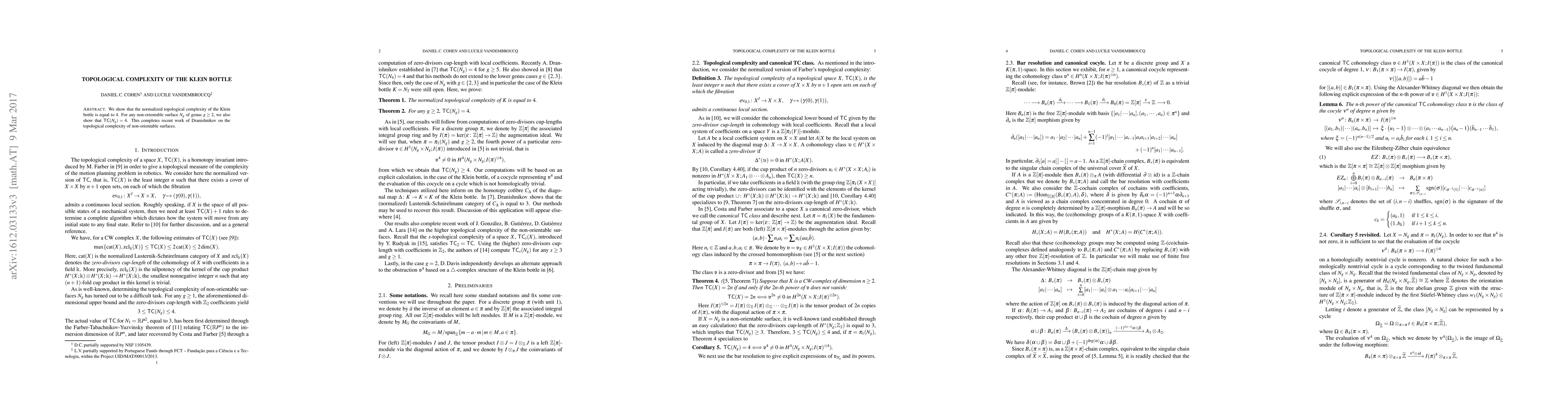 Summary: The paper establishes that the topological complexity of the Klein bottle is $4$, and extends this result to show that $TC(N_g)=4$ for any $g\geq 2$, completing Dranishnikov's work on the topological complexity of non-orientable surfaces.