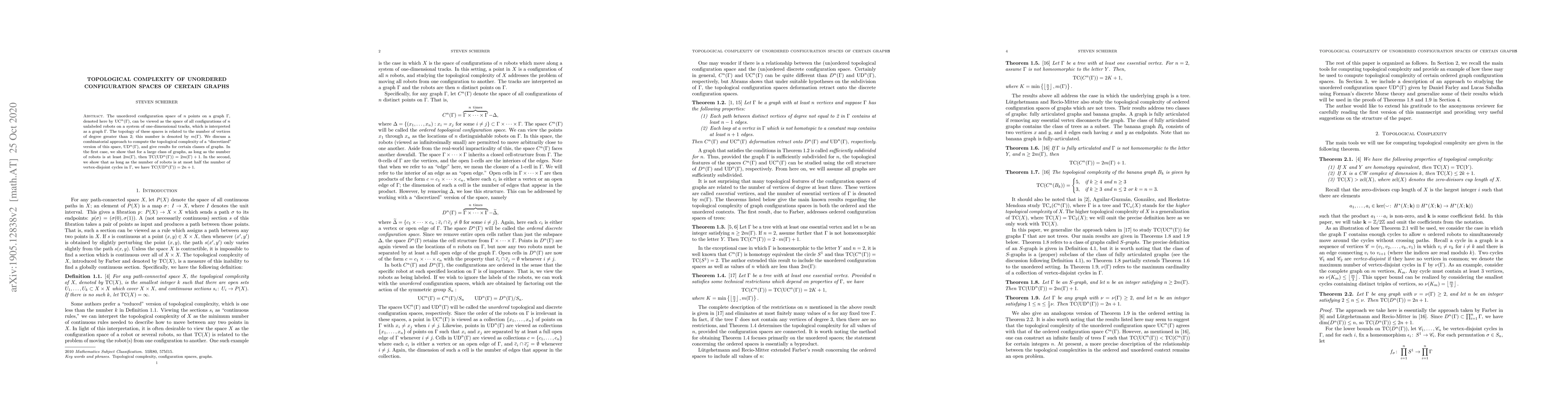 This paper investigates the topological complexity of unordered configuration spaces of $n$ unlabeled robots on a graph $\Gamma$, denoted $UD^n(\Gamma)$. It provides combinatorial methods to compute this complexity, showing that for certain graph classes, $TC(UD^n(\Gamma))$ equals $2m(\Gamma)+1$ when $n \geq 2m(\Gamma)$ and $2n+1$ when $n \leq \frac{1}{2}$ the number of vertex-disjoint cycles in $\Gamma$.