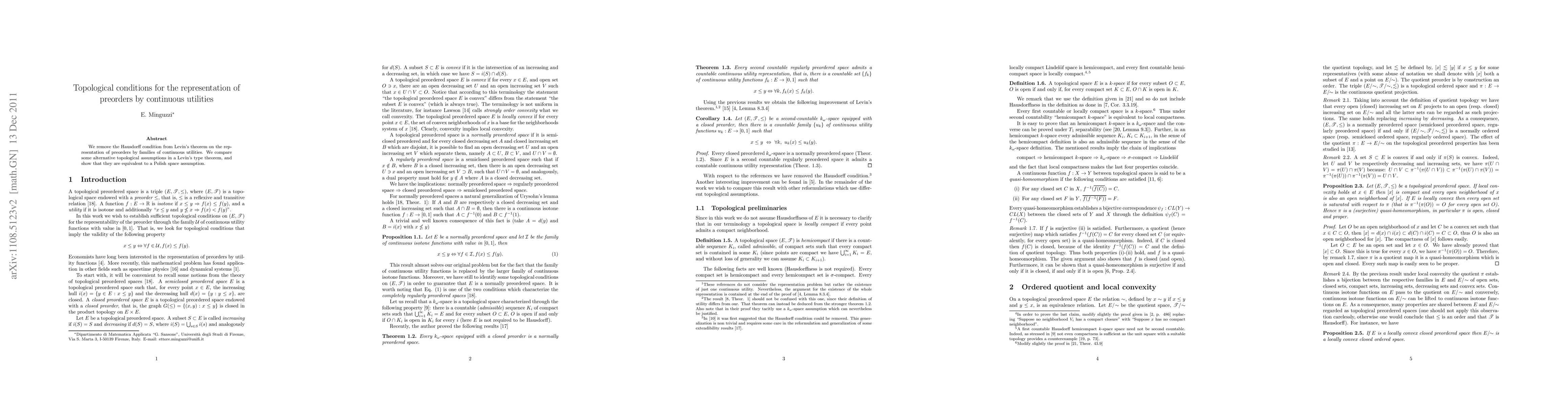 This paper removes the Hausdorff condition from Levin's theorem on representing preorders using continuous utilities, and explores alternative topological assumptions that are equivalent to the assumption of a Polish space.
