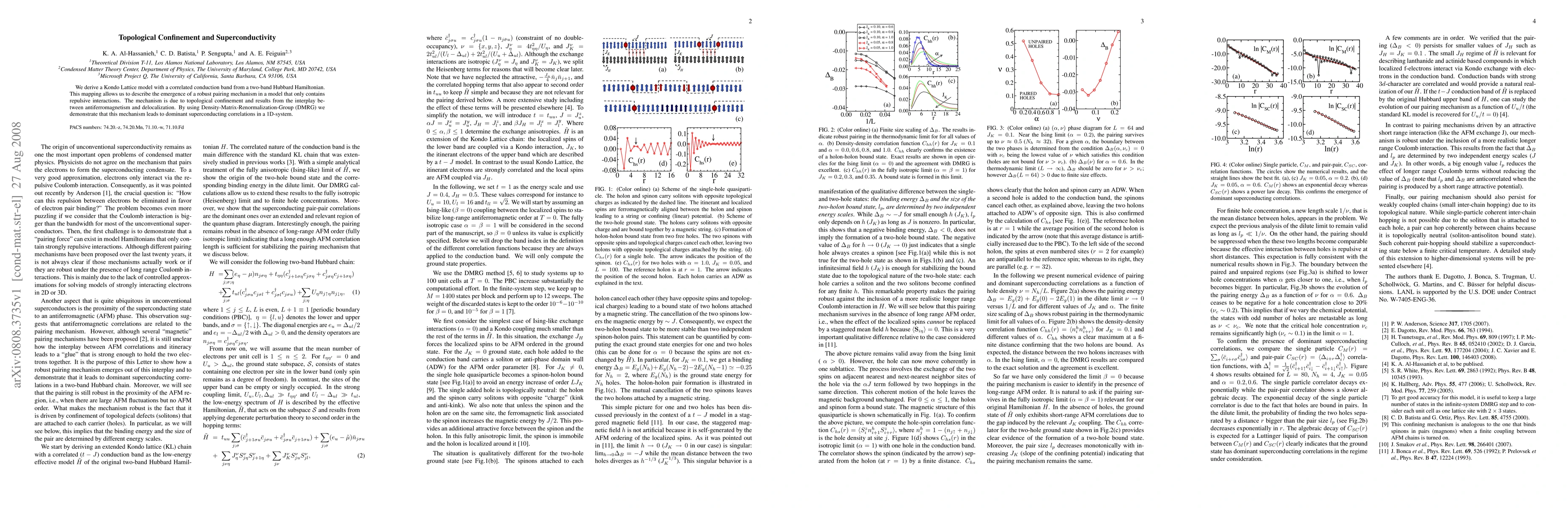 We derive a Kondo Lattice model with a correlated conduction band from a two-band Hubbard Hamiltonian. This mapping allows us to describe the emergence of a robust pairing mechanism in a model that only contains repulsive interactions. The mechanism is due to topological confinement and results from the interplay between antiferromagnetism and delocalization. By using Density-Matrix-Renormalization-Group (DMRG), we demonstrate that this mechanism leads to dominant superconducting correlations in a 1D-system.