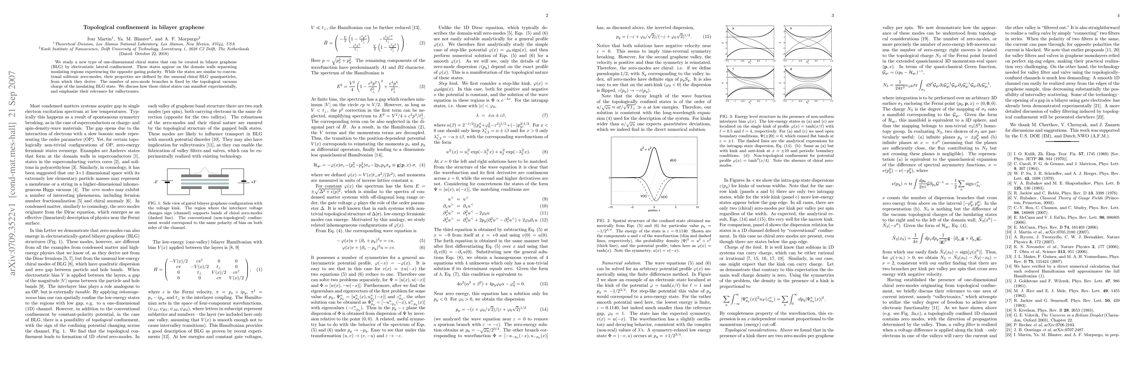 This paper investigates one-dimensional chiral states in bilayer graphene created through electrostatic confinement, appearing on domain walls between opposite gating polarities. These states, derived from unique chiral BLG quasiparticles, are topologically protected and could be significant for valleytronics applications.