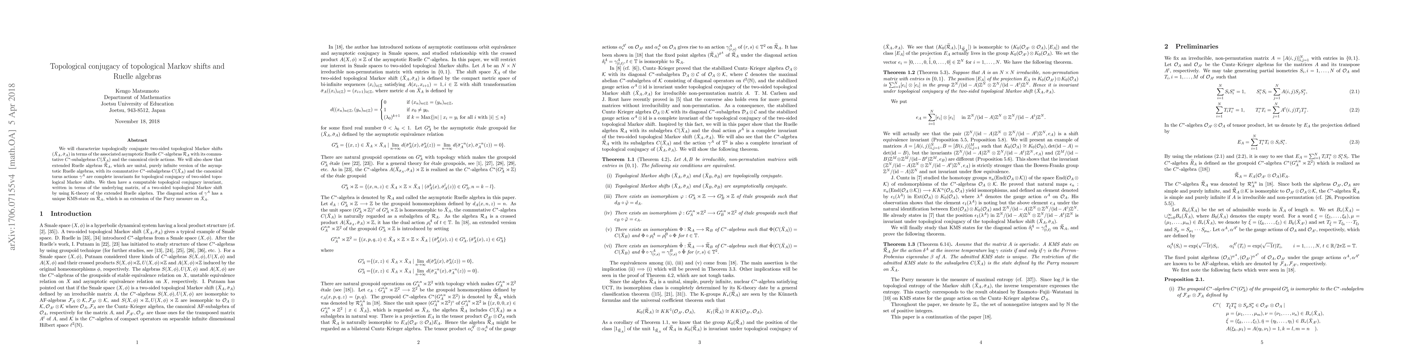 Researchers characterized topological conjugacy of two-sided Markov shifts based on their associated Ruelle algebras and circle actions, providing a computable invariant for topological conjugacy.