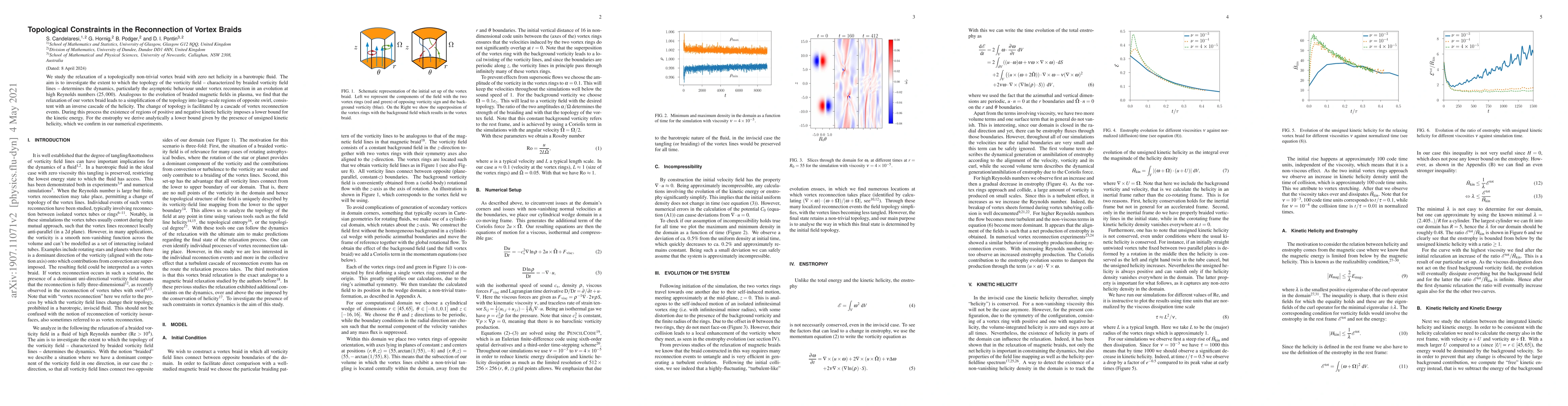 We study the relaxation of a topologically non-trivial vortex braid with zero net helicity in a barotropic fluid. The aim is to investigate the extent to which the topology of the vorticity field -- characterized by braided vorticity field lines -- determines the dynamics, particularly the asymptotic behaviour under vortex reconnection in an evolution at high Reynolds numbers 25,000. Analogous to the evolution of braided magnetic fields in plasma, we find that the relaxation of our vortex braid leads to a simplification of the topology into large-scale regions of opposite swirl, consistent with an inverse cascade of the helicity. The change of topology is facilitated by a cascade of vortex reconnection events. During this process the existence of regions of positive and negative kinetic helicity imposes a lower bound for the kinetic energy. For the enstrophy we derive analytically a lower bound given by the presence of unsigned kinetic helicity, which we confirm in our numerical experiments.