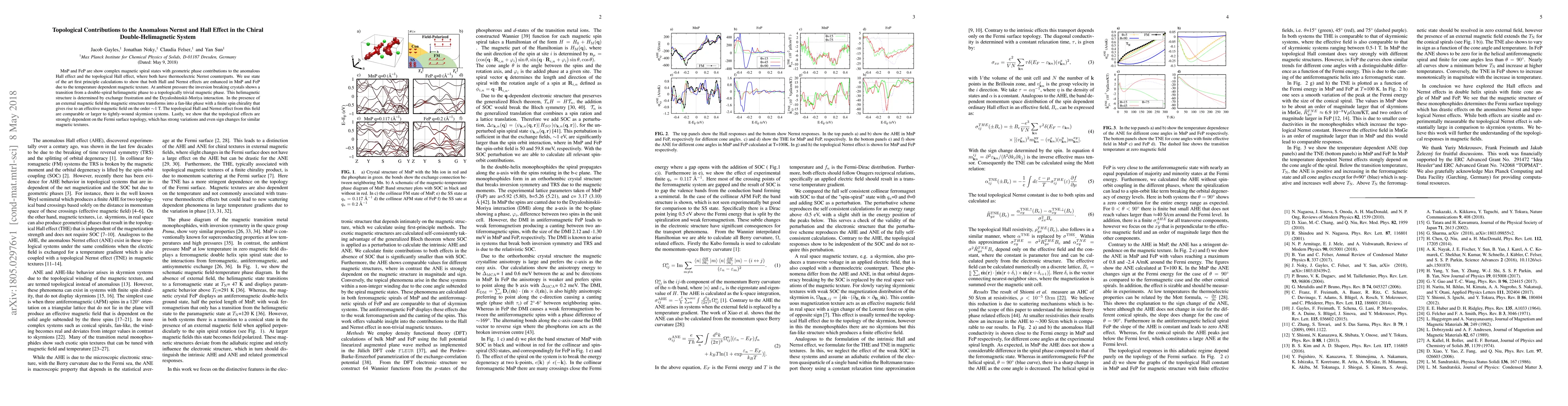 MnP and FeP are show complex magnetic spiral states with geometric phase contributions to the anomalous Hall effect and the topological Hall effect, where both have thermoelectric Nernst counterparts. We use state of the art first principle calculations to show that both Hall and Nernst effects are enhanced in MnP and FeP due to the temperature dependent magnetic texture. At ambient pressure the inversion breaking crystals shows a transition from a double-spiral helimagnetic phase to a topologically trivial magnetic phase. This helimagnetic structure is determined by exchange frustration and the Dzyaloshinskii-Moriya interaction. In the presence of an external magnetic field the magnetic structure transforms into a fan-like phase with a finite spin chirality that gives rise to an effective magnetic field on the order $\sim$1 T. The topological Hall and Nernst effect from this field are comparable or larger to tightly-wound skyrmion systems. Lastly, we show that the topological effects are strongly dependent on the Fermi surface topology, which has strong variations and even sign changes for similar magnetic textures.