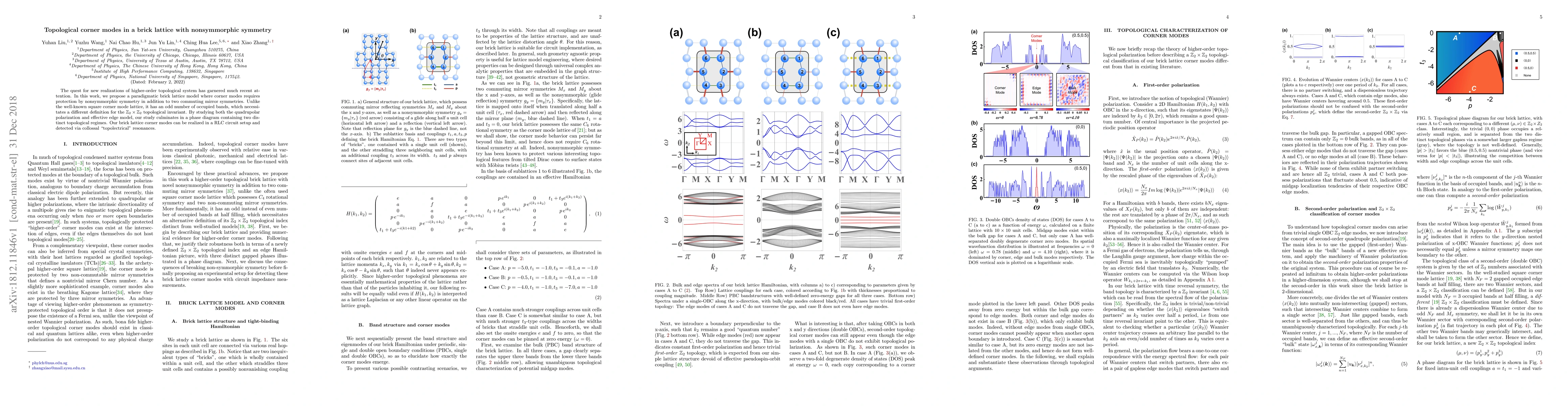The quest for new realizations of higher-order topological system has garnered much recent attention. In this work, we propose a paradigmatic brick lattice model where corner modes requires protection by nonsymmorphic symmetry in addition to two commuting mirror symmetries. Unlike the well-known square corner mode lattice, it has an odd number of occupied bands, which necessitates a different definition for the $\mathbb Z_2\times \mathbb Z_2$ topological invariant. By studying both the quadrupolar polarization and effective edge model, our study culminates in a phase diagram containing two distinct topological regimes. Our brick lattice corner modes can be realized in a RLC circuit setup and detected via collossal "topolectrical" resonances.