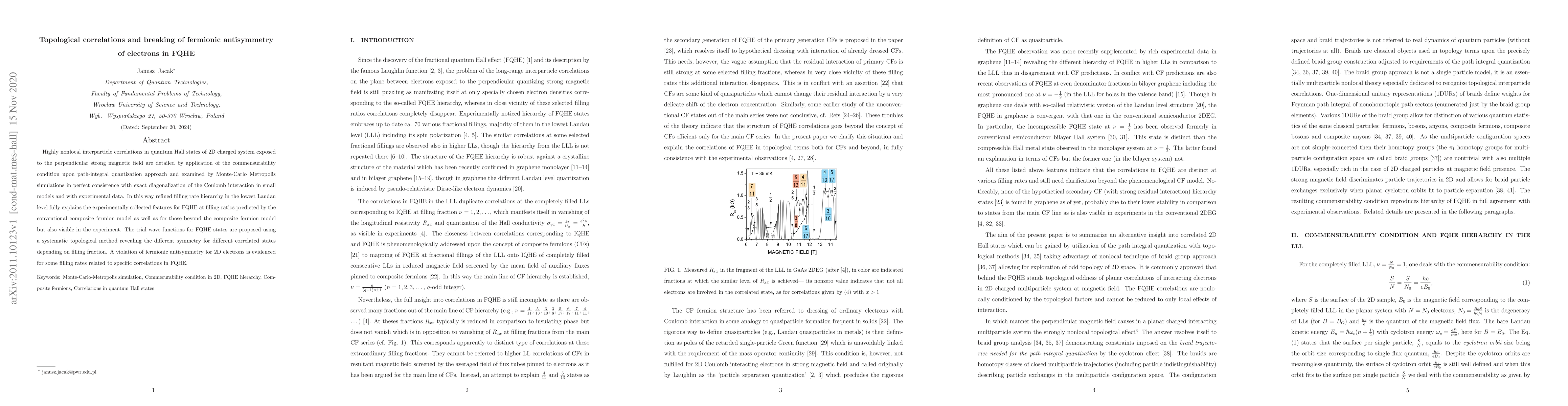 Highly nonlocal interparticle correlations in quantum Hall states of 2D charged system exposed to the perpendicular strong magnetic field are detailed by application of the commensurability condition upon path-integral quantization approach and examined by Monte-Carlo Metropolis simulations in perfect consistence with exact diagonalization of the Coulomb interaction in small models and with experimental data. In this way refined filling rate hierarchy in the lowest Landau level fully explains the experimentally collected features for FQHE at filling ratios predicted by the conventional composite fermion model as well as for those beyond the composite fermion model but also visible in the experiment. The trial wave functions for FQHE states are proposed using a systematic topological method revealing the different symmetry for different correlated states depending on filling fraction. A violation of fermionic antisymmetry for 2D electrons is evidenced for some filling rates related to specific correlations in FQHE.