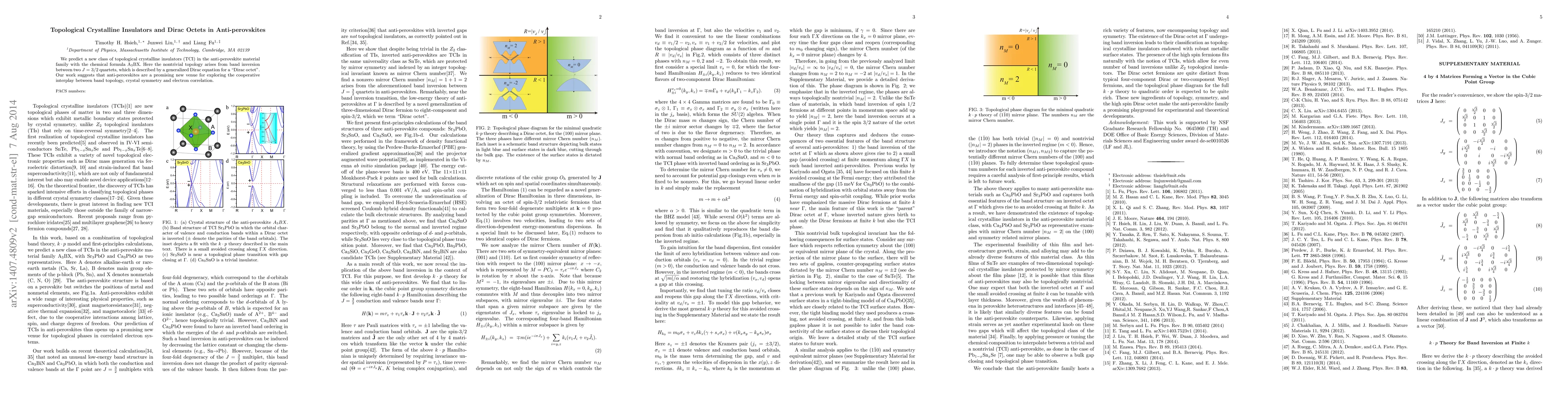 The research predicts a novel class of topological crystalline insulators in anti-perovskite materials, A3BX, where nontrivial topology emerges from $J=3/2$ quartet band inversion. This phenomenon is explained through a 'Dirac octet' model, suggesting anti-perovskites as a promising platform for studying band topology, crystal symmetry, and electron correlation interactions.