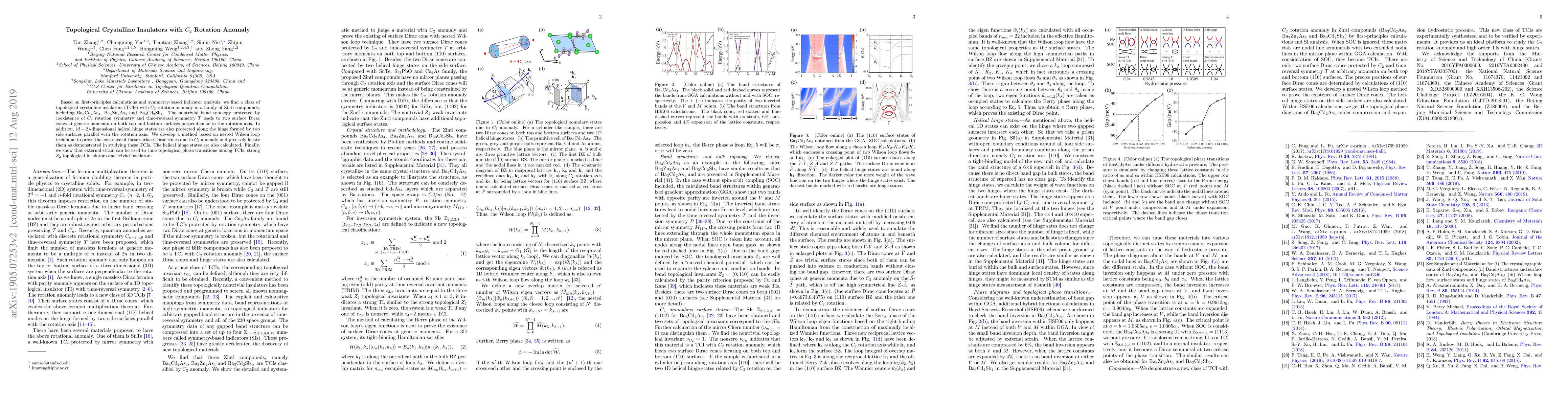This paper identifies a class of topological crystalline insulators in Zintl compounds, such as Ba₃Cd₂As₄, exhibiting $C_2$ rotation anomaly, leading to surface Dirac cones and helical hinge states. External strain can tune topological phase transitions among these materials.