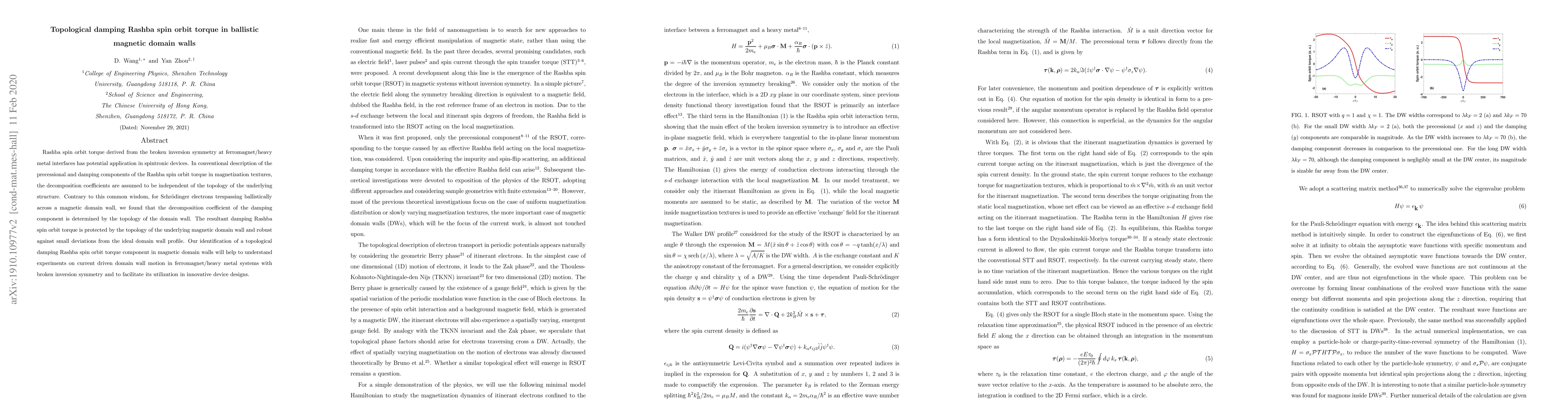 This research identifies a topological damping Rashba spin orbit torque in ballistic magnetic domain walls, finding that the damping component's decomposition coefficient is influenced by the domain wall's topology. This topological effect provides robustness against small deviations, aiding in the understanding and application of current-driven domain wall motion in spintronic devices.