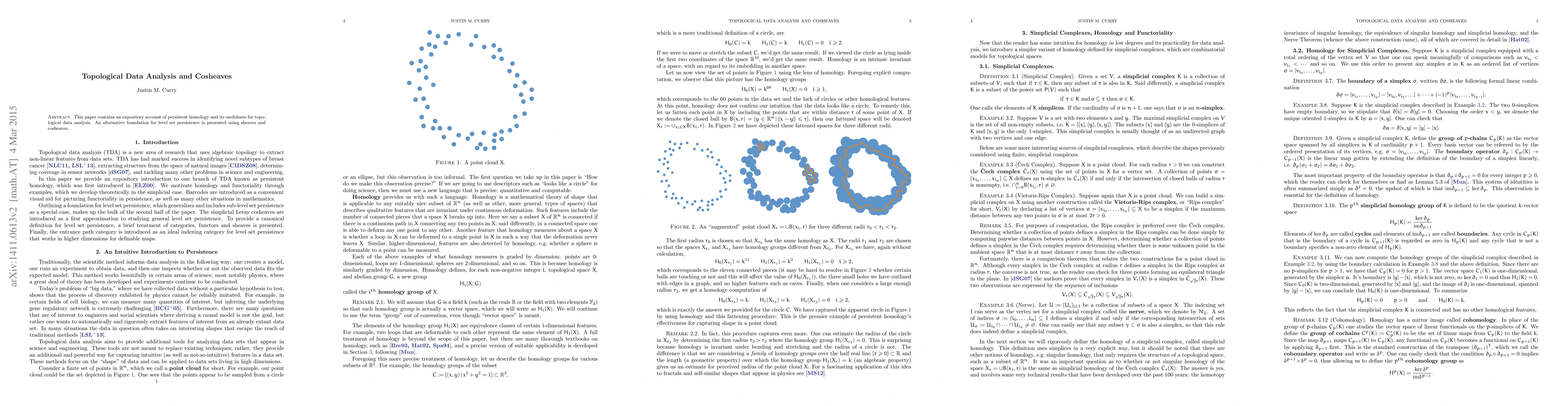 This paper provides an overview of persistent homology in topological data analysis and introduces an alternative theoretical foundation using sheaves and cosheaves for level-set persistence.