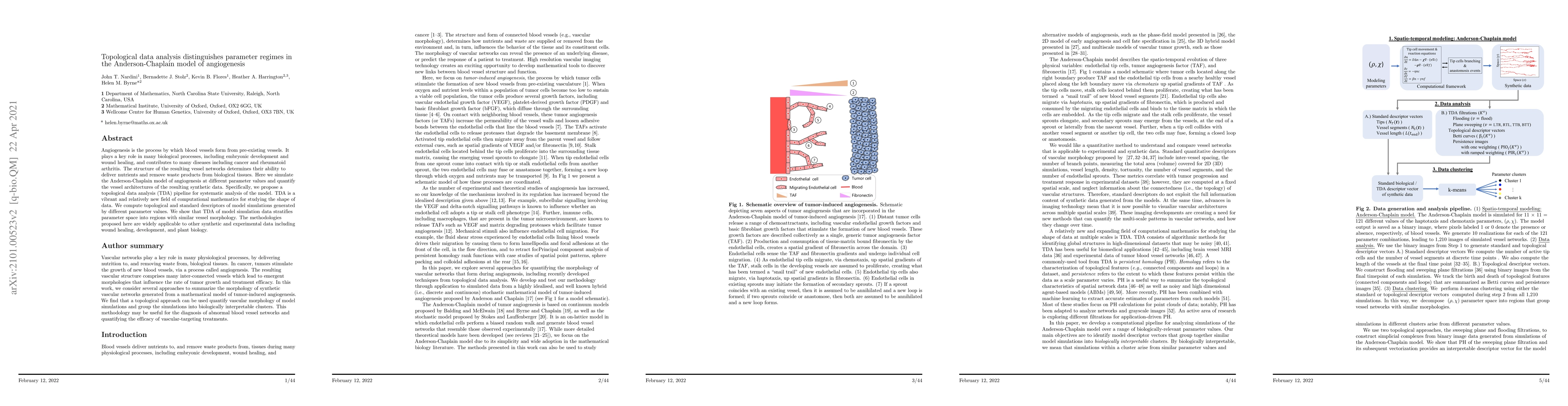 Researchers used topological data analysis to study angiogenesis models, finding that different parameter values create distinct vessel network structures. This method can be applied to other biological processes, offering insights into disease mechanisms.