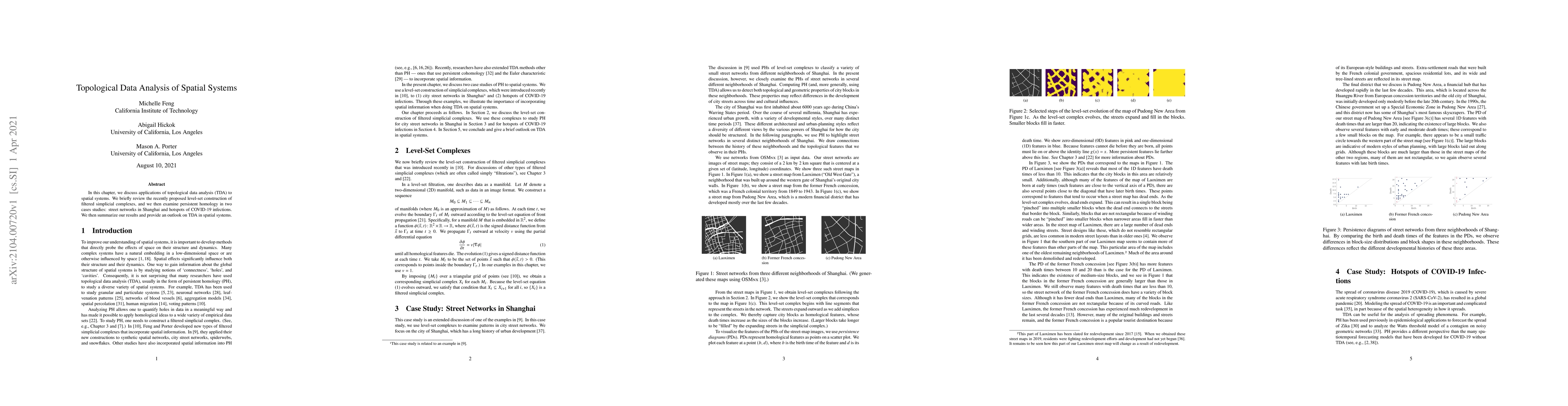 This paper explores the application of topological data analysis (TDA) to spatial systems, specifically using persistent homology to analyze street networks in Shanghai and COVID-19 hotspots. The study concludes with a summary of findings and future directions for TDA in spatial contexts.