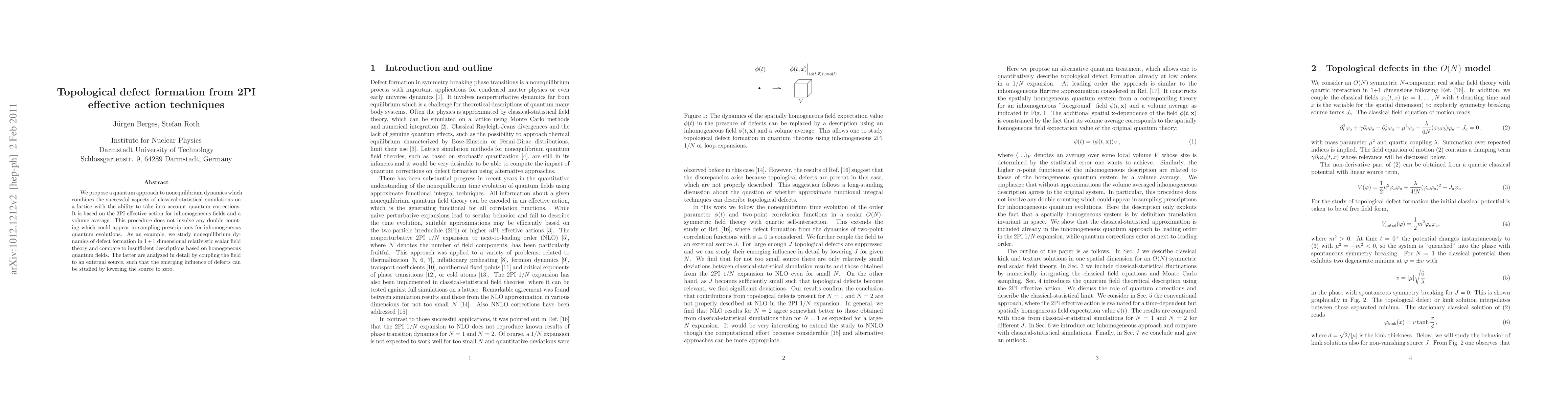 This paper proposes a quantum approach to nonequilibrium dynamics using 2PI effective action techniques, combining classical simulations with quantum corrections. It studies defect formation in 1+1 dimensional relativistic scalar field theory, demonstrating improved accuracy over methods based on homogeneous quantum fields.